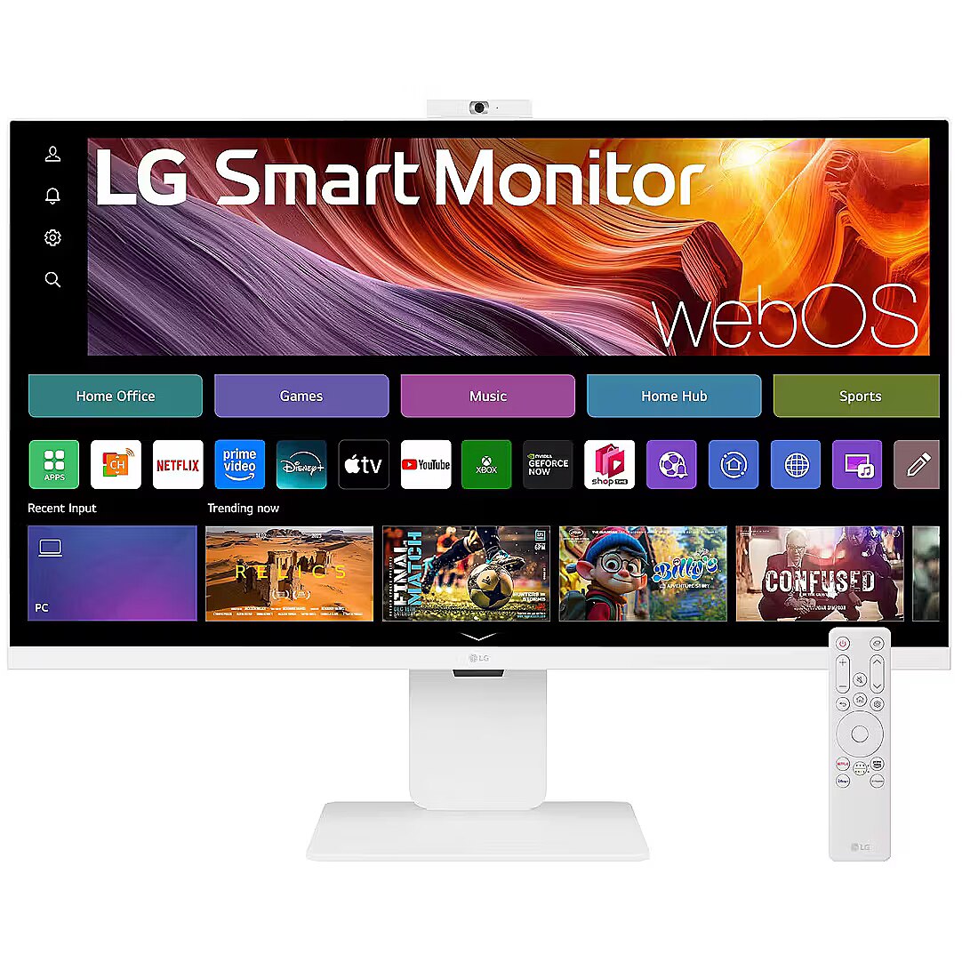 LongDesc - One screen. Endless possibilities.Adapt to any task or environment with numerous possibilities. Powered by webOS, you can manage home office tasks without a PC and enjoy a wealth of content, seamlessly balancing work and entertainment. Enjoy a large 31.5-inch display, and stunning 4K picture quality in your own space.31.5” 4K UHD IPS DisplayGreat display for both work and play4K UHD (3840x2160) IPS display with HDR 10 and up to 95% DCI-P3 Color Gamut delivers a high contrast ratio and precise colors. It lets you experience visual immersion, from enjoying entertainment to processing work.webOSSeamless channel surfingThanks to webOS, enjoy seamless access to a variety of content through apps like Netflix, Prime Video, Disney+, YouTube, Apple TV, and free LG Channels. Get personalized recommendations, explore apps like Sports, Game, and LG Fitness, and easily control everything with a remote. The 3-side borderless design of the slim white body enhances immersion, while 5Wx2 stereo speakers deliver crystal-clear sound for the ultimate viewing experience.webOSHome Office ready without a PCwebOS enables you to remotely access your PC and Cloud PC via Remote PC. This functionality lets you utilize various home office services, including video conferencing and cloud-based applications, all without a PC.GameJump right into the gameNo need for a gaming console - play games through LG Smart Monitor. Access cloud games directly from Home and swiftly connect to streaming apps for game content.MusicCurated to your music tastesEnjoy customized music immersively with 5W x 2 stereo speakers. You can search for music easily and access recently played songs from your streaming services quickly. Also, it recommends popular songs based on your preference.SportsFollow your sport teamsSupport your team with personalized service. It shows updated information on your favorite sports team based on your profile.LG FitnessPersonalized home fitnessTransform your living room into a personal gym with LG Fitness. Enjoy a wide range of workouts, track your progress, and achieve your goals, all from the comfort of your couch.Brightness ControlBright intelligence in any lightBrightness Control detects light sources in your space and automatically adjusts the screen brightness for crisp and clear visuals, whether it's day or night.Dynamic Tone MappingCome alive with brightness and contrastEnjoy visuals as they were meant to be seen, with Dynamic Tone Mapping adjusting brightness and contrast for optimal detail and realism. Movies and games come alive with rich immersion and consistent quality across all content.Simple designOptimize your space, enhance your styleThe 3-side borderless design of the slim white body, combined with the flat, minimal stand, seamlessly blends into your office or home, occupying minimal space. It offers an ideal viewing experience with convenient tilt and height adjustments.USB-CProductivity hub with easy connectivityUSB-C port allows from display and data transferring to connected device charging (up to 90W), enabling support for your laptop, all at the same time over a single cable.Built-in Full HD webcamAll set to video callsStreamline your virtual meetings with a webcam featuring a magnetic detachable design. Its sleek design blends into various space, and you can cover it quickly for extra privacy.Privacy camera coverPrivacy in a snapThe privacy slider instantly covers the camera lens with a single touch, helping to protect your privacy when you want.Built-in dual micDon't miss your voiceA built-in dual microphone vividly captures your voice during video calls-no additional devices needed.Voice control with Magic RemoteWith the ThinQ app, you can be easily controlled remotely using voice commands via Alexa, ensuring that the smart monitor serves as more than just a display. It becomes a central hub for all your entertainment and productivity needs, elevating your overall multimedia experience. All of this requires only the Magic Remote.AirPlay 2 + Screen Share + BluetoothMirror straight from your devicesEffortlessly share content from your smart device to our monitor with AirPlay 2* (for Apple devices), Screen Share** (for Android devices). Connect instantly and enjoy a seamless viewing and audio experience on a larger screen with just a few taps.Multi portsA variety of interfaceOur smart monitor offers 2xHDMI and 3xUSB-C ports compatible with various devices for a smooth display. It allows a clutter-free desk setup for ideal space utilization.
