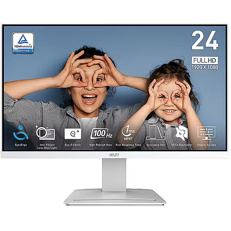 LongDesc - The Outstanding 23.8” 100Hz EyesErgo Business Monitor23.8-Inch EyesErgo monitor with 100Hz refresh rate offers a wider view and enhance productivity. EyesErgo technology nurtures well-being through reduced strain and ergonomic design. We are elevating visuals and productivity with seamless hardware and software integration and welcoming 100Hz of innovation to the future of work.EyesErgo Tech, Your Health ProtectorOptimize well-being and work eyesergo with our display's ergonomic design and eye care features. Enhanced comfort and promote healthier productivity.100Hz + 1ms MPRTFlawless Flow, No More Stutters.Attend the smoothest online conference call and show the perfect advertising video to customers with a 100Hz refresh rate. VESA's research shows that for 95% of users, 85Hz Refresh Rate has become a defacto standard for normal use that shows “flicker-free” images.Ergonomic DesignErgonomic design aims to enhance efficiency, comfort, and safety while reducing discomfort and the risk of injury.Empower Productivity, Unleash ConnectivityWith several practical designs including standard VESA Mount, Stand with an accessory slot and complete I/O ports, the PRO MP2412W is the caring assistant that boosts your productivity.MSI POWER LINK SUPPORTMSI Power Link supported by HDMI™ CEC allows the MSI mini-PC to be powered on by the power button of the monitor, to enhance efficiency and user experience.Simplicity at Your Fingertips - Display Kit AppThe MSI exclusive software Display Kit provides the most convenient tool, the proper display that allows you to read and enjoy the image at the same time & color mode to you while working or everyday.Power Saving ProductIt is our responsibility to promote sustainable development and we proudly offer an power-friendly product, contributing to a greener environment.Sustainable Packing SolutionsReduce the environmental impact with our sustainable solutions.