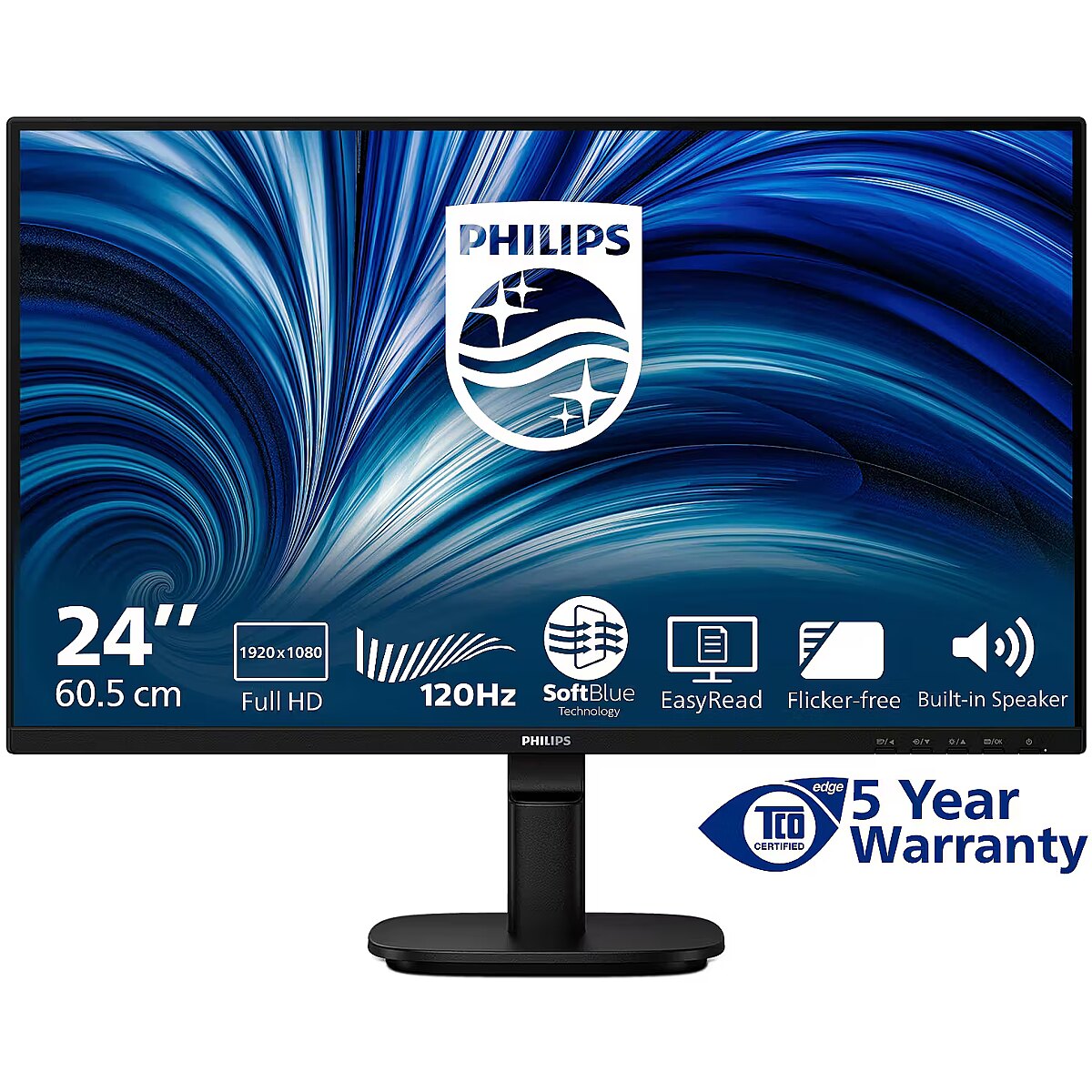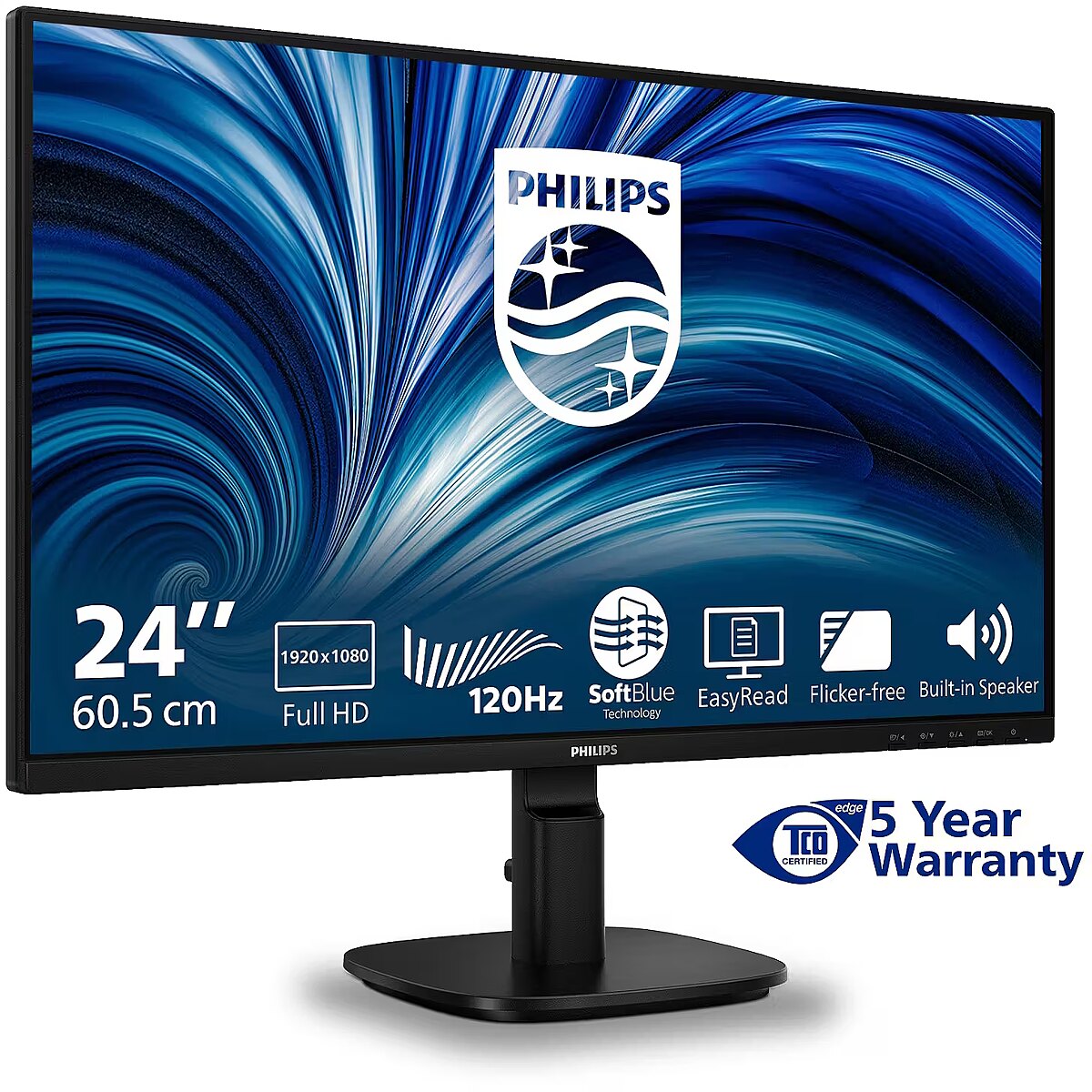 LongSummaryDescription - Philips 2000 series 24B2N2200/00. Display diagonal: 60.5 cm (23.8"), Display resolution: 1920 x 1080 pixels, HD type: Full HD, Display technology: LCD, Response time: 4 ms, Native aspect ratio: 16:9, Viewing angle, horizontal: 178°, Viewing angle, vertical: 178°. Built-in speaker(s). VESA mounting. Product colour: Black