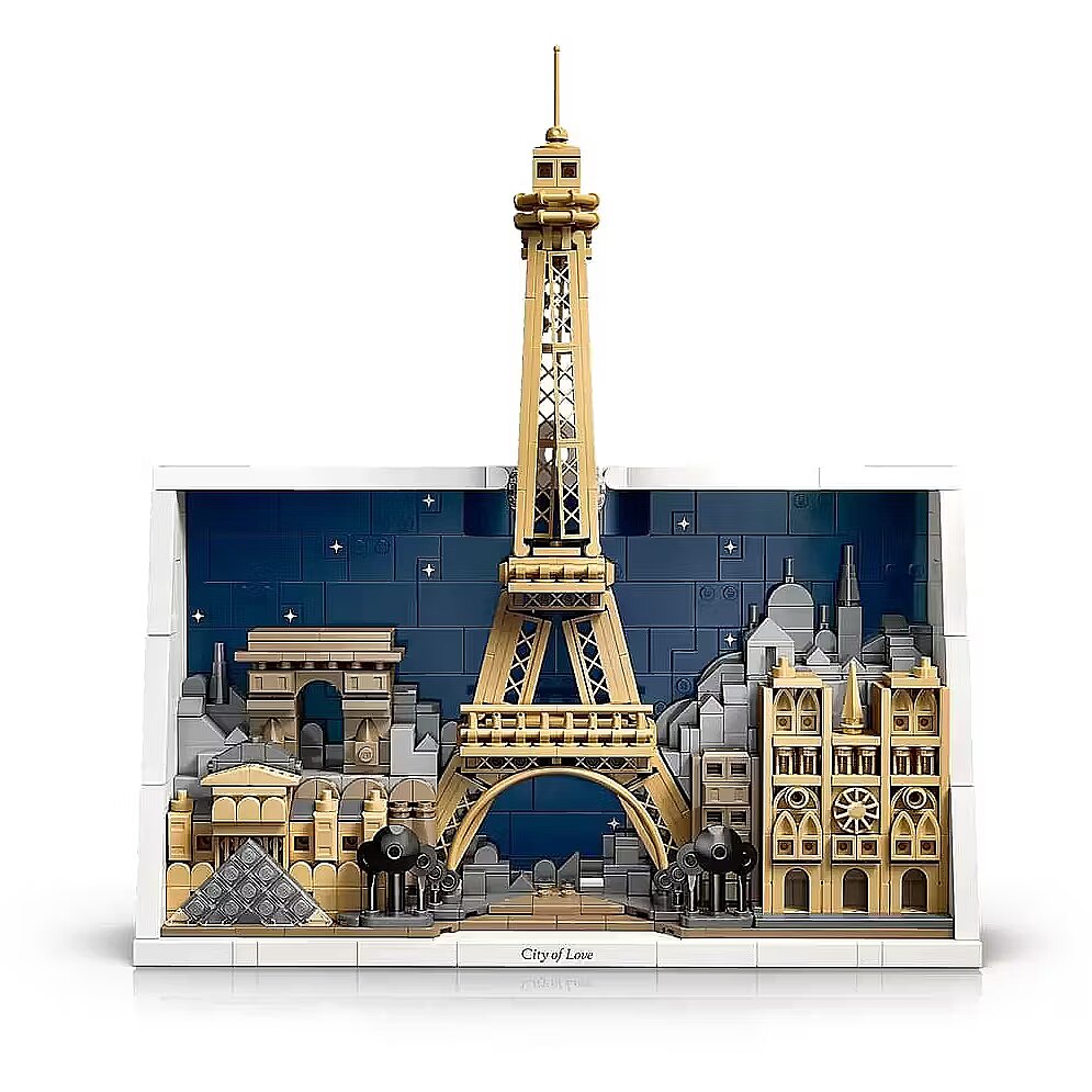 Description - Blocks Architecture 21064 Paris - City of Love Share your love of Paris and its iconic landmarks with this collectible LEGO Architecture Paris - City of Love (21064) set for adults aged 18+. Create a display piece that makes a great gift for yourself or any history or travel enthusiast. Marvel at the starry sky and city skyline as you build. Discover the details of the Eiffel Tower, Notre-Dame Cathedral, Arc de Triomphe, and the Louvre. Complete the look by adding the decorative City of Love brick and a brick frame, then display it on a wall or shelf in your home or office.