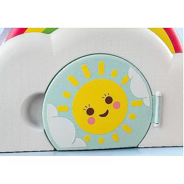 Apraksts - Mickey un Minnie mākoņu māja ir rotaļu komplekts, kas dažādos veidos atbalsta mazuļu attīstību. Daudzās iespējamās atsevišķu elementu kombinācijas stimulē bērnu radošumu. Piemēram, varavīksni var izmantot gan kā šūpoles, gan kā grabulīti, bet to var arī kombinēt ar varavīksnes klucīšiem, lai izveidotu krāsainu arku. Daudz mīklu un puzļu, piemēram, lietus kāpnes, attīsta gan sīko motoriku, gan kognitīvās prasmes. Burvīgie Disney varoņi iedvesmo pirmo reizi spēlēt lomas un radoši stāstīt stāstus. Izglītojoša vērtība mazuļu attīstības veicināšanai: Stimulē radošumu: dažādas atsevišķu detaļu kombinācijas piedāvā nebeidzamu jautrību, kurā ir daudz ko atklāt Smalko motoriku, pārvietojot un izvietojot figūriņas, spēlējoties ar lidmašīnām, saliekot varavīksnes un varavīksnes klucīšus, atverot un aizverot durvis ar uzdrukātu saulīti, pārvēršot varavīksni šūpolēs un daudz ko citu. Pirmā pieredze ar puzles veidošanu, ievietojot lietus pilienus mākoņa malā Pirmā pieredze ar puzles veidošanu un kārtošanu ar varavīksnes akmentiņiem: neatkarīgi no tā, vai būvēsiet torni vai varavīksnes arku, neuzmanīgi vai rūpīgi sakārtojot pēc varavīksnes raksta - viss ir iespējams. Dzirdes maņu stimulēšana, pateicoties varavīksnes akmentiņos integrētajai grabulīša funkcijai. Cēloņu un seku attiecību izpratne: Tā izskatās varavīksne! Sakratiet to, lai aktivizētu grabulīša funkciju, vai pagrieziet to, lai izmantotu to kā šūpoles un novietotu figūriņas galos. Lietus pilienus var izmantot kā puzli vai kā kāpnes. Krāsu saskaņošana: Minnija sēž lidmašīnā, kas sader ar viņas pidžamu, tāpat kā Mikijs. Pirmās lomu spēles ar Mikiju un Minniju: aizmigšana mākoņu mājā, sacīkste ar lidmašīnām vai kāpšana pa lietus pilienu kāpnēm.
