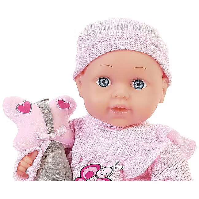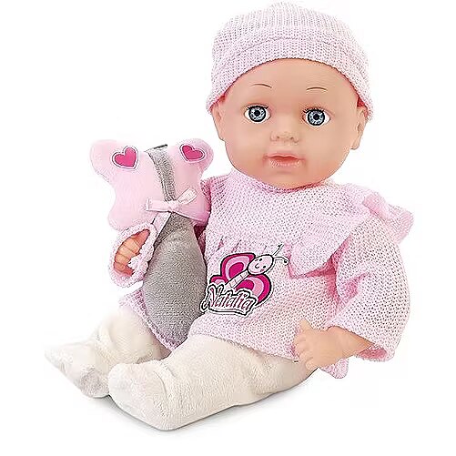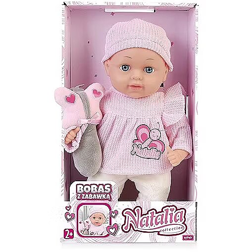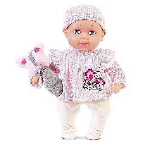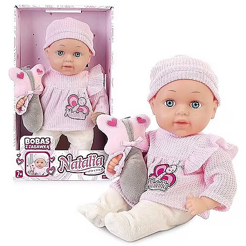 Description - Natalia baby doll 33 cm with toy The baby doll with attractive toy is soft and pleasant to touch. This adorable doll in stylish clothes will become an inseparable companion for everyday play and for falling asleep in the evening.