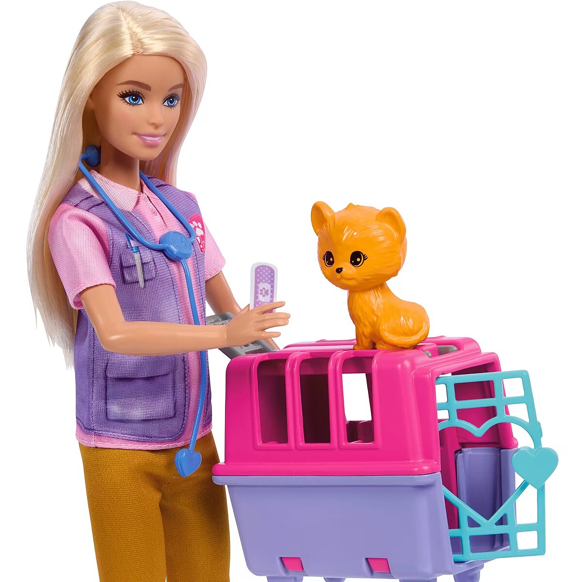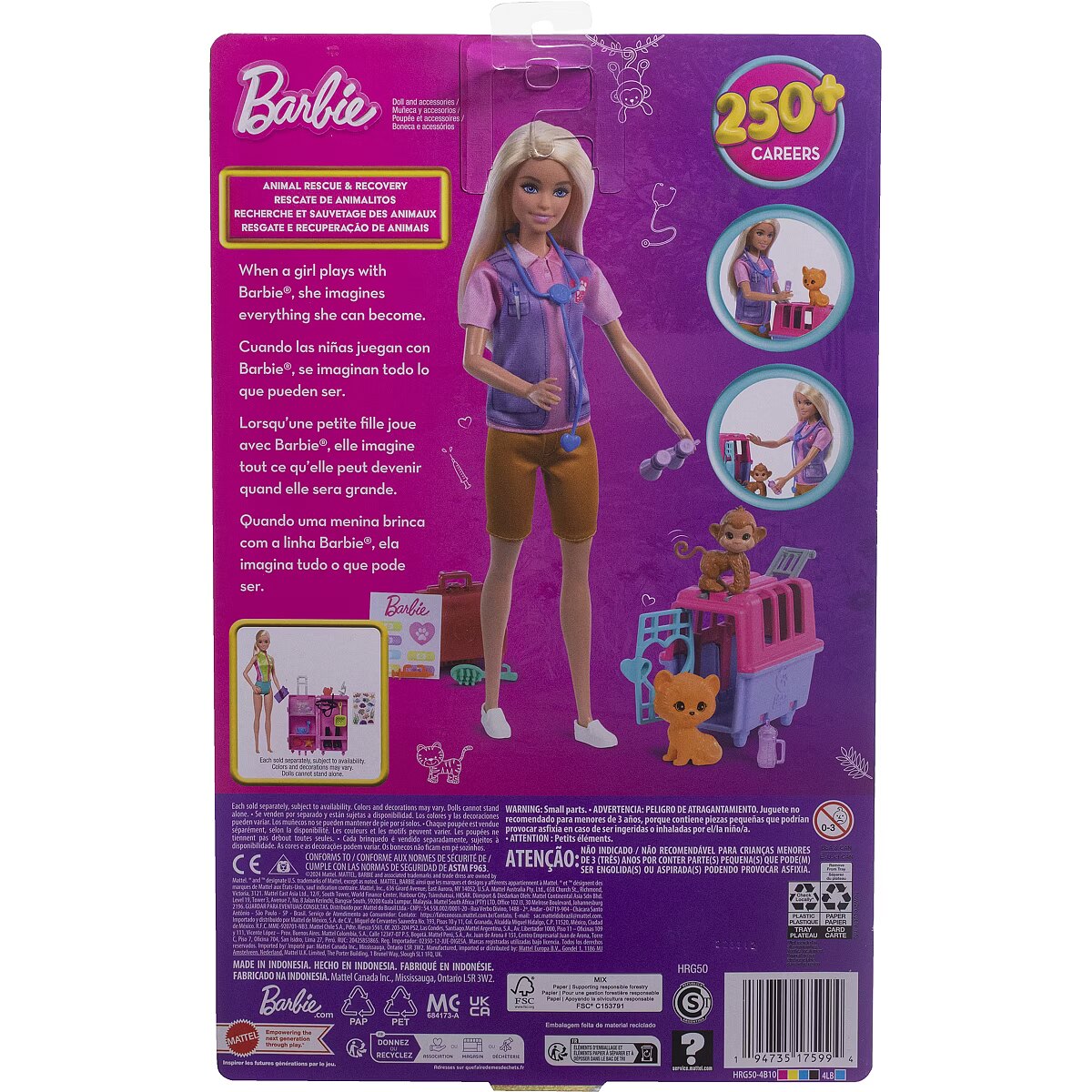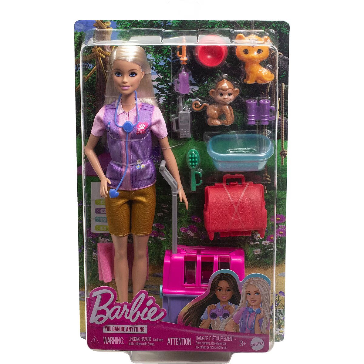 LongDesc - The Barbie Animal Rescue and Release doll and playset let kids bring the outdoors in and explore exciting career possibilities! Barbie animal rescuer doll has two adorable patients to rescue and care for -- a baby monkey and tiger -- and lots of accessories to help. With items like an animal carrier, doctor's bag and more, Barbie doll takes kids on wild adventures and encourages young minds to dream big. Doll cannot stand alone. Colours and decorations may vary.