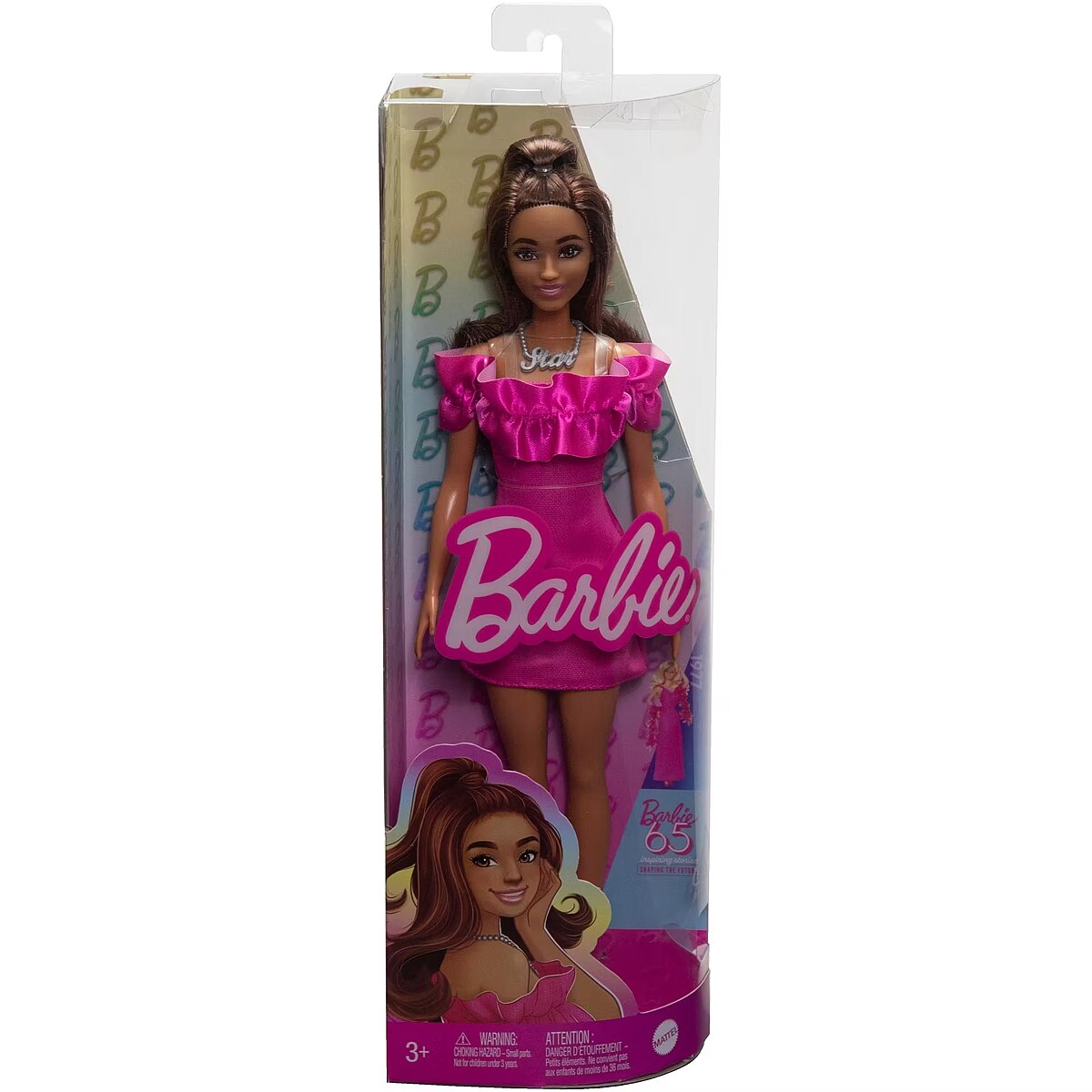 LongDesc - Commemorating 65 years of iconic fashion and signature style, Barbie Fashionistas dolls celebrate diversity and offer endless possibilities for storytelling and fashion exploration. With an inclusive range of looks, kids can see how fun it is to express personality through style! And featuring today's coolest trends, Barbie dolls make an ideal gift for fashion-loving kids everywhere. Each sold separately, subject to availability. Dolls cannot stand alone. Colours and decorations may vary.