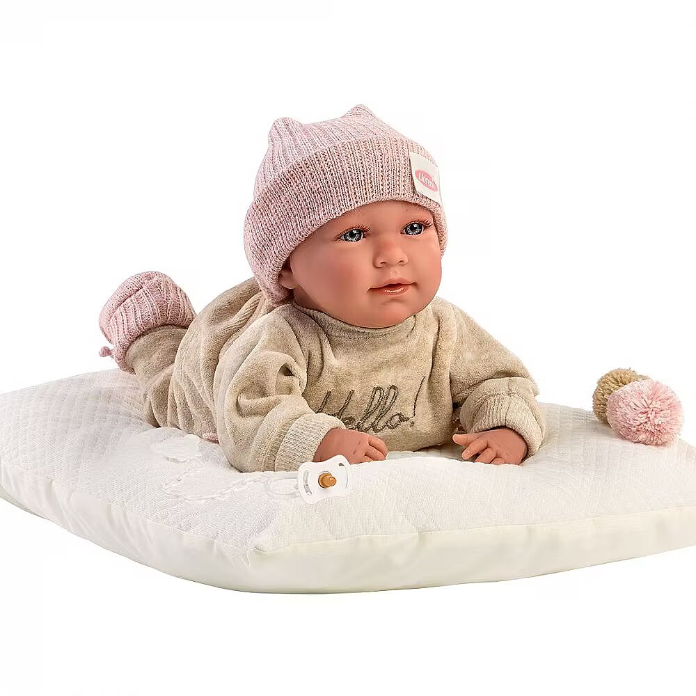 Description - Lalka bobas Mimi płacząca z poduszką 42 cm Ręczna produkcja lalek Llorens sprawia, że są one dopracowane w każdym calu. Delikatnie podkreślona uroda, cieniowania, piękne rzęsy i oczy. Najwyższej jakości materiały. Każda lalka w rękach wytwórcy nabiera barw i życia. Ich ubranka wykonane są z bawełny organicznej, wełny oraz z materiałów z recyklingu. To najlepszy prezent dla Twojego dziecka, spełniający funkcję zarówno edukacyjną jak i zabawową.
