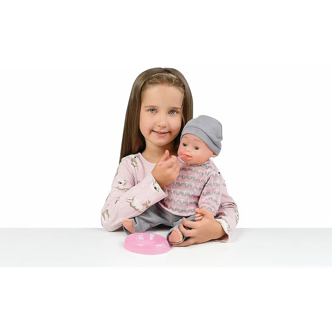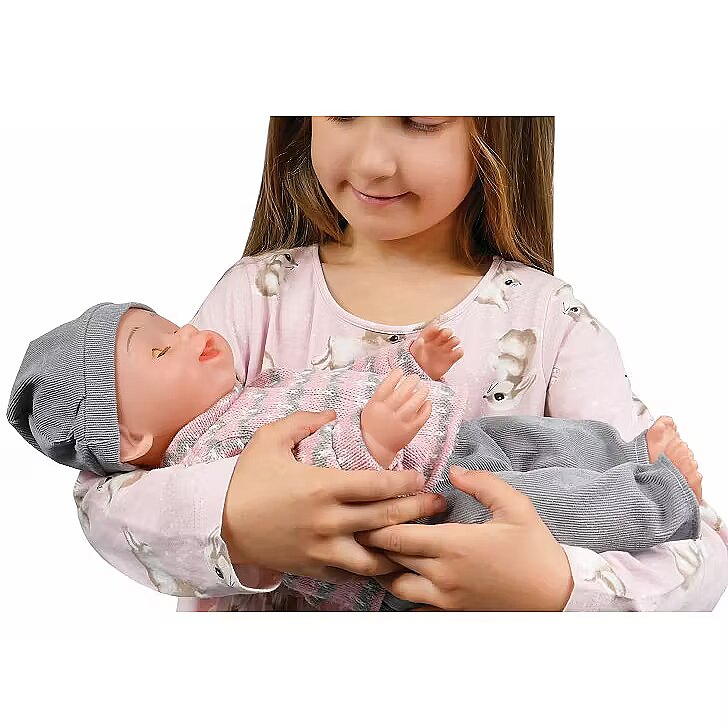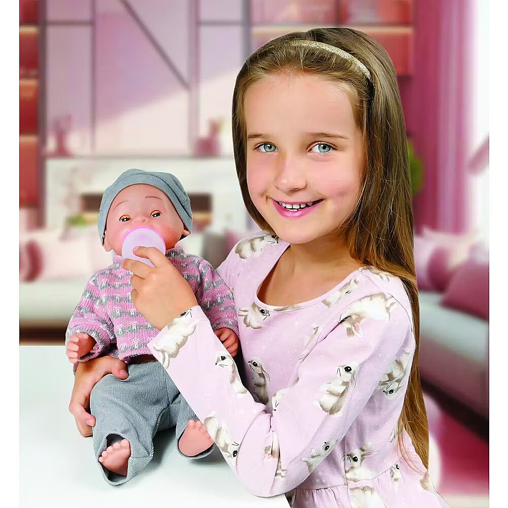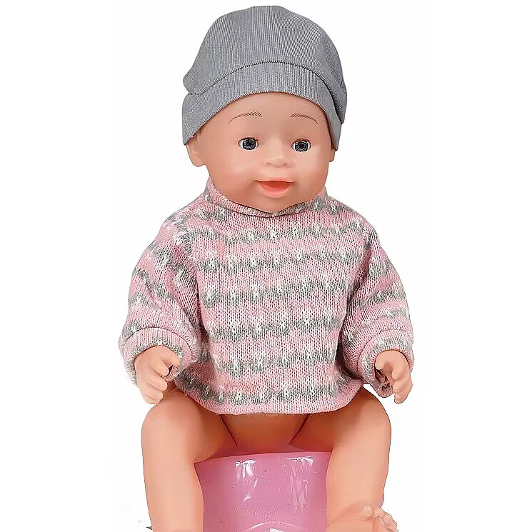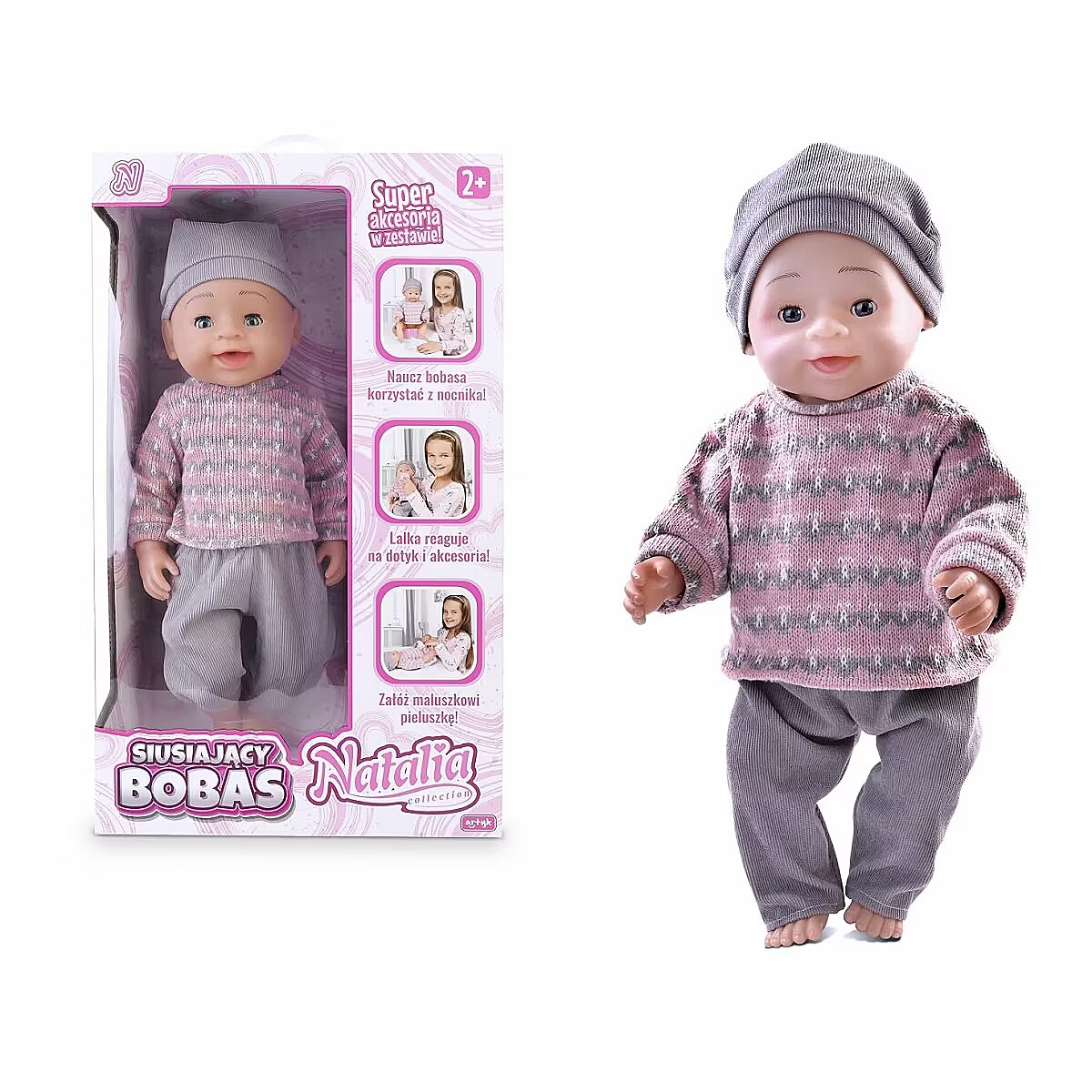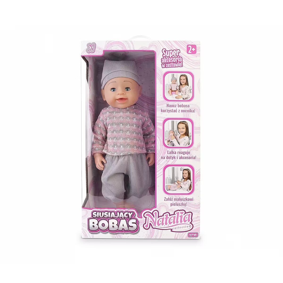 Description - Interactive peeing bean 43cm from Natalia Collection The peeing bean from Natalia Collection surprises you with interactive features! Give him water to make him start peeing, touch his tummy and you will hear him laughing! Playing with dolls is beneficial for your child's development! teaches empathy Exercises fine motor skills. Enables developmental play indoors and outdoors. Develops imagination. teaches about body parts Relaxes and calms Helps with nappy training Enjoyable Teaches responsibility and patience A unique peeing Baby! The Peeing Baby from Natalia Collection is a unique combination of classic peeing dolls and modern interactive toys. The doll responds to tummy tickling, rocking and being given a bottle. Once the tummy is filled with water, sit the behemoth on the potty and press the button to start peeing! Nursing accessories included The accessories included with the doll will enhance play and make taking care of the baby doll more realistic. The bottle will make it convenient to give water to the doll, and the potty and nappy will make it possible to nurse when the little one starts to pee! For the little ones The pee-pee bobble is suitable for children as young as 2 years old, making it perfect as a first doll. Thanks to the peeing function and the included potty, the doll can help your child learn to wean and get used to the new stage of growing up. Perfect for a gift! The doll will appeal to children who enjoy looking after toddlers and playing house. The high quality workmanship and interactive features mean that the toddler will not get bored quickly and will last for years. The toy is packaged in a beautiful box that showcases the doll, making it a great gift for any occasion. Features: Drinking water and peeing - fill the included bottle with water and then give it to your doll. Lightly squeeze the bottle while feeding to get the liquid into the doll's tummy. Then sit the doll on the potty or put her nappy on and press the button above her belly button the doll will start to pee water. Responds to touch - stroke the doll's belly and you will hear sounds of laughter and chatter. Responds to accessories - when you put the bottle to her mouth, you will hear drinking and contentment sounds. Responds to change of position - when laid down, babbling and falling asleep sounds can be heard and the doll closes its eyes. When lifted from the lying position, she wakes up and babbles. Movable soft arms and legs.