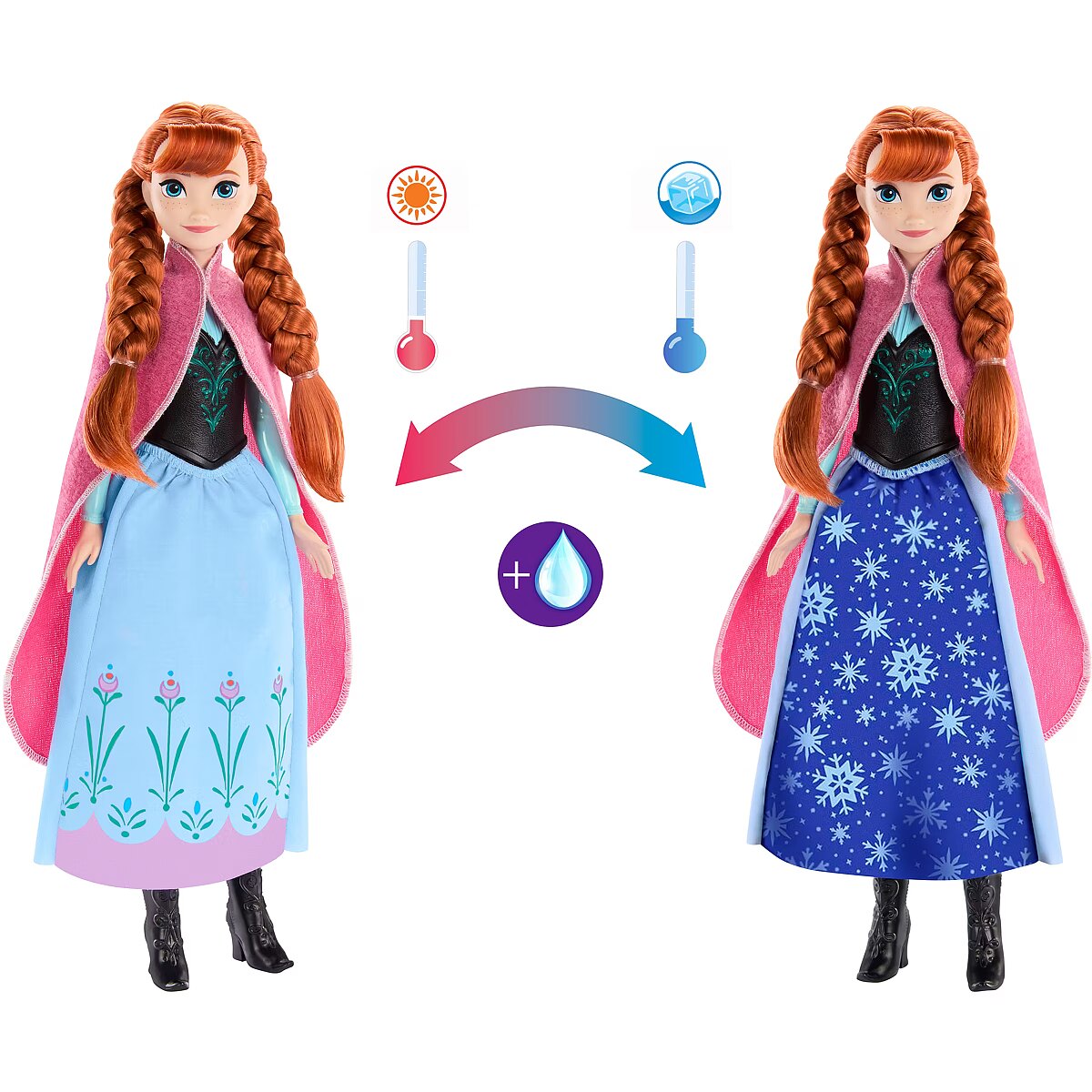 LongDesc - Inspired by the animated character from Disney's Frozen, this Anna fashion doll is ready for a flurry of colour-change fun! Magical Skirt Anna doll features water-activated colour change in her skirt. Using the snowflake wand, kids can harness their own 'ice powers' and make the skirt colour and pattern dramatically change with icy water. The colour-change magic can be repeated, for endless play! Doll cannot stand alone. Colours and decorations may vary.