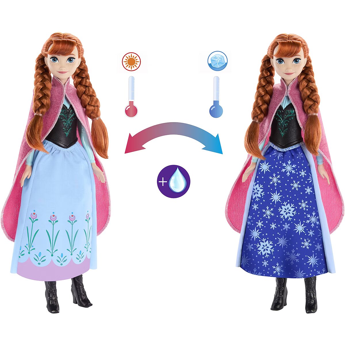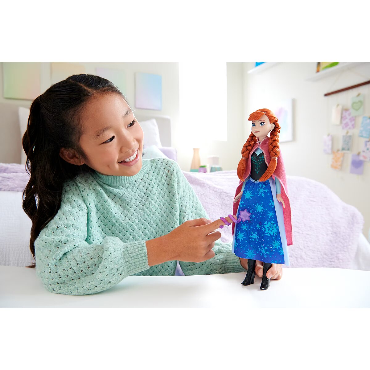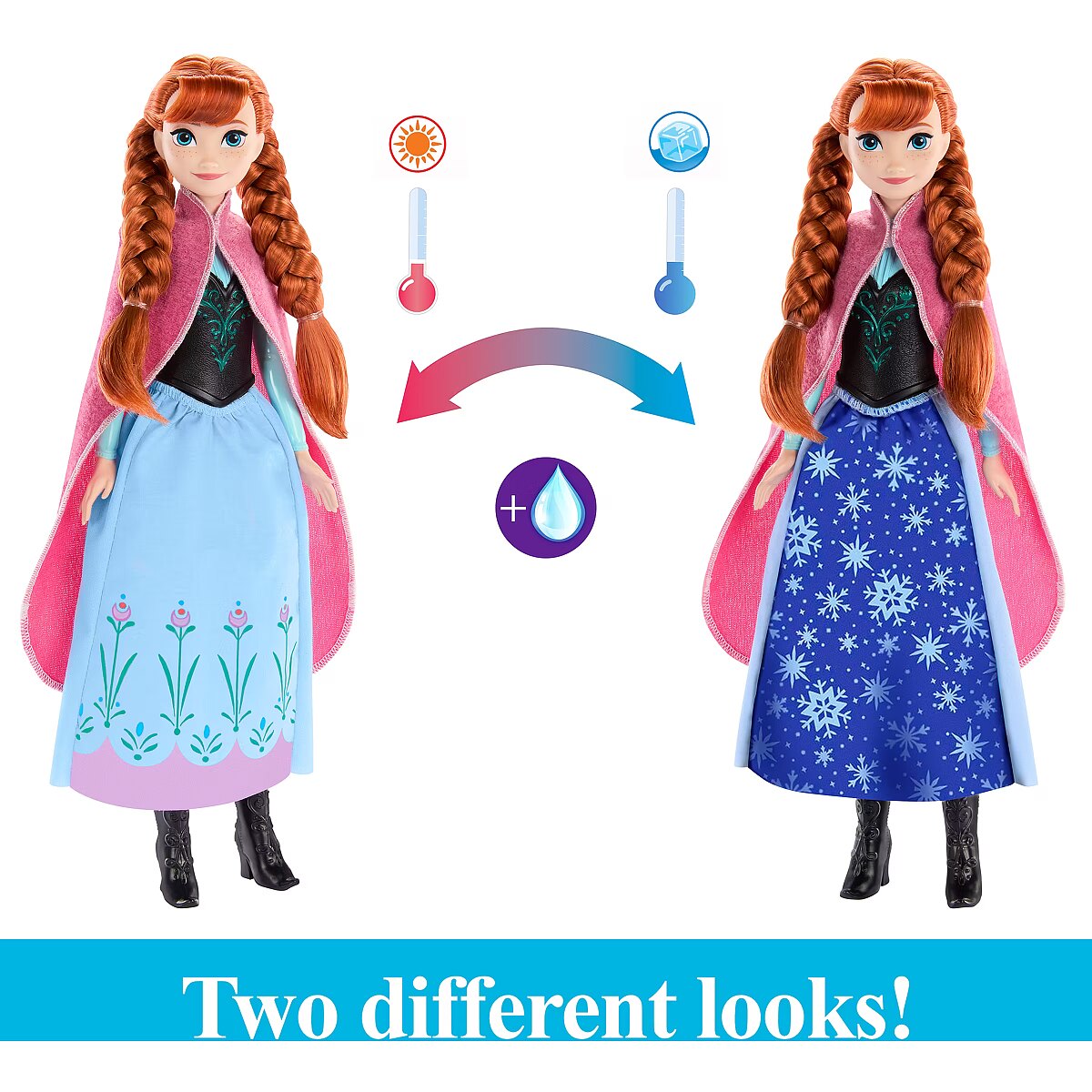 Description - Inspired by the animated character from Disney's Frozen, this Anna fashion doll is ready for a flurry of color-change fun! Magical Skirt Anna doll features water-activated color change in her skirt. Using the snowflake wand, kids can harness their own 'ice powers' and make the skirt color and pattern dramatically change with icy water. The color-change magic can be repeated, for endless play! Doll cannot stand alone. Colors and decorations may vary. Inspired by the animated character in Disney's Frozen, Magical Skirt Anna doll wears her signature look from the movie, with a soft color-change skirt and removable cape and boots. Kids can use the snowflake wand and icy water to activate the color magic, transforming Anna's skirt into a dramatic blue color with a pretty snowflake pattern. Warm water changes the skirt back to its original color and printso the fun can happen over and over again! Just like in the movie, Anna doll wears her signature braids for brushing and styling fun. Fans can collect all the Disney Frozen fashion dolls and accessories for the ultimate adventure! Each sold separately, subject to availability.