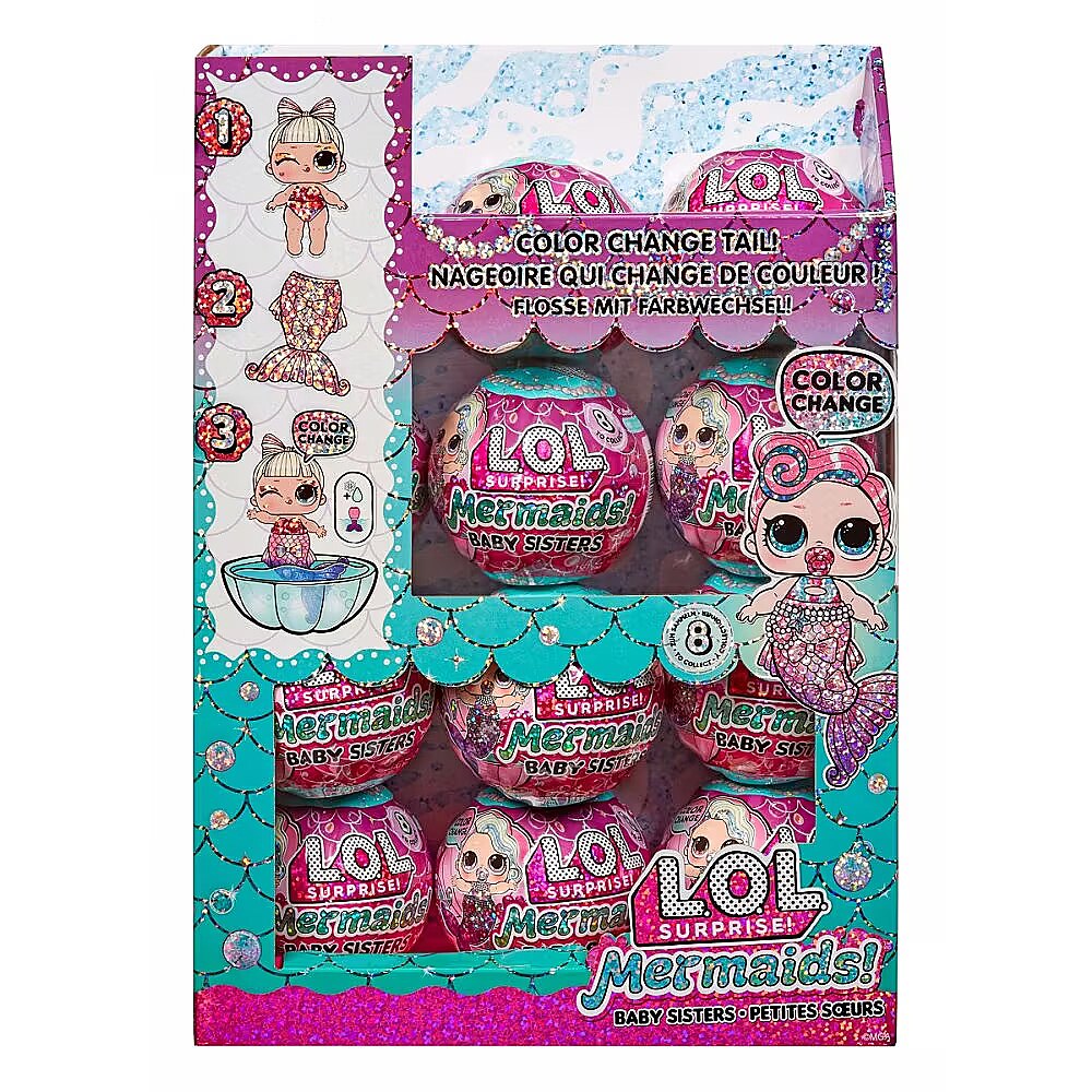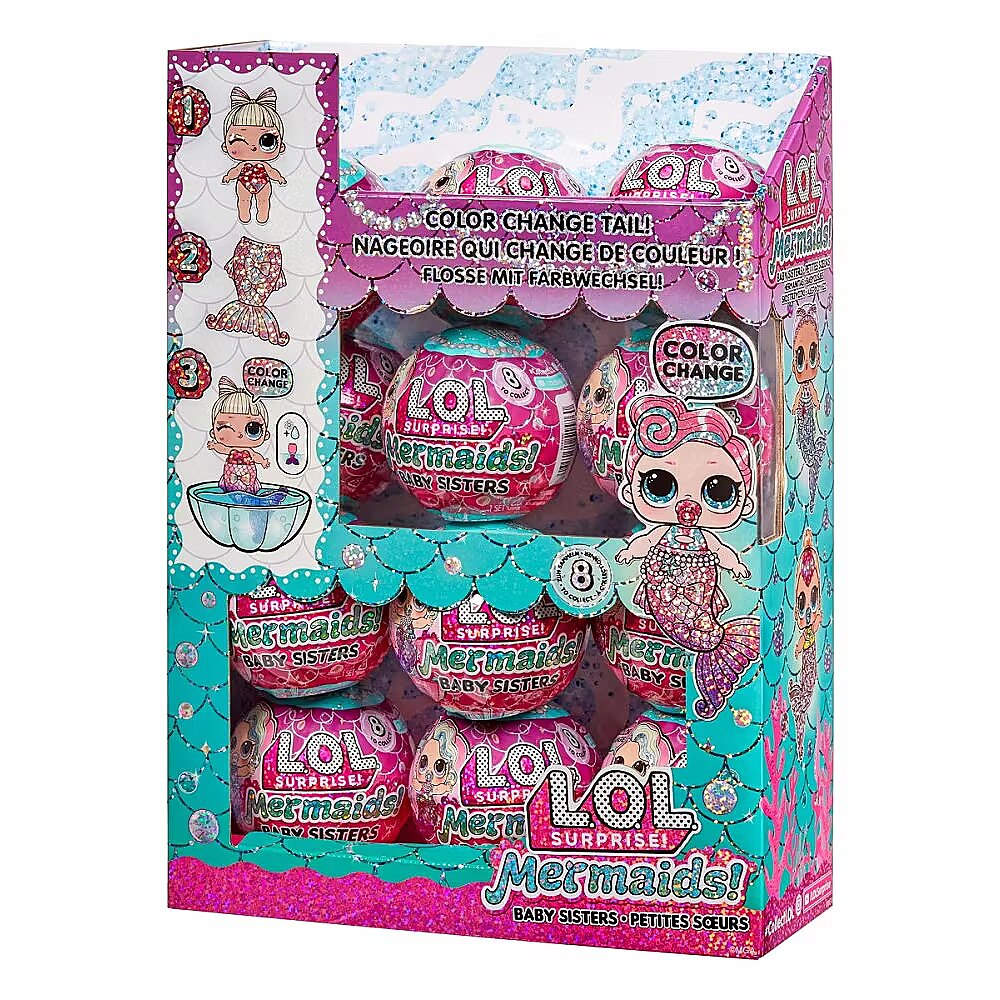 LongDesc - Get ready to make a splash with the adorable LOL Surprise Mermaid! Tots, bringing you an exciting new play pattern to create your own mermaid tails for your Tot!Simply mix the 2 colors of gel, pour them into the tail mold, and let set for 30 minutes to transform into a colorful mermaid tail! Once your Tots are dressed in their stunning new tails, dip them in cold water to reveal a gorgeous color change! Splish and splash around in your LOL ball, which doubles as a fishbowl or hot tub display for your cute mermaids!Collect all 8 LOL Surprise Mermaid! Tots!
