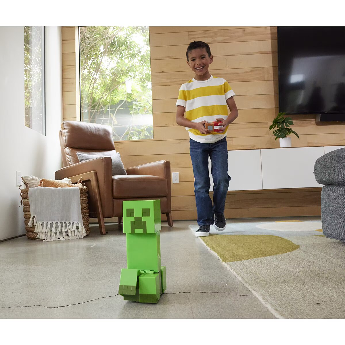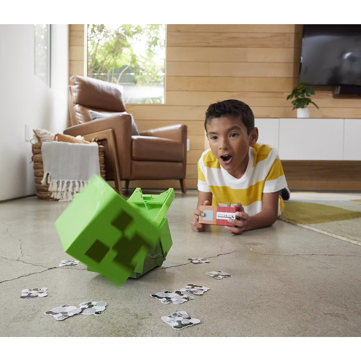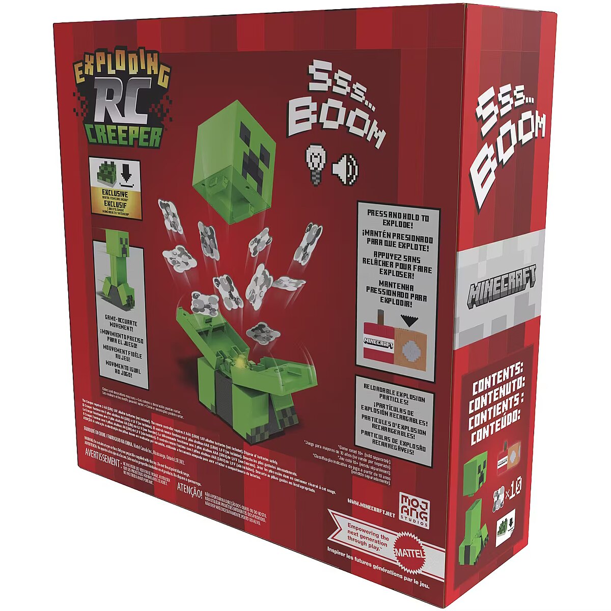 LongDesc - The Minecraft Exploding RC Creeper is the ultimate remote-control figure with game-authentic movement! Load the 10 explosion particles into the Exploding RC Creeper and press the button on the controller for lights and sounds -- then, press and hold to explode and launch the particles into the air! The surprise exploding action is sure to be a hit with Minecraft players and fans -- just press the joystick on the controller to move the Creeper and re-create exciting in-game moments again and again. Plus, the Exploding RC Creeper comes with an exclusive DLC digital item code inside to redeem an in-game accessory! Alkaline batteries should be used with this product. Colours and decorations may vary.