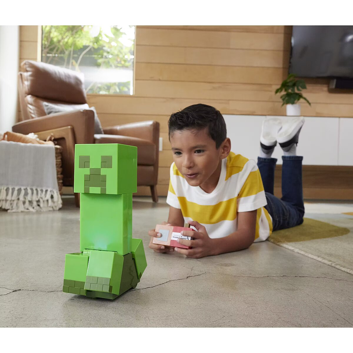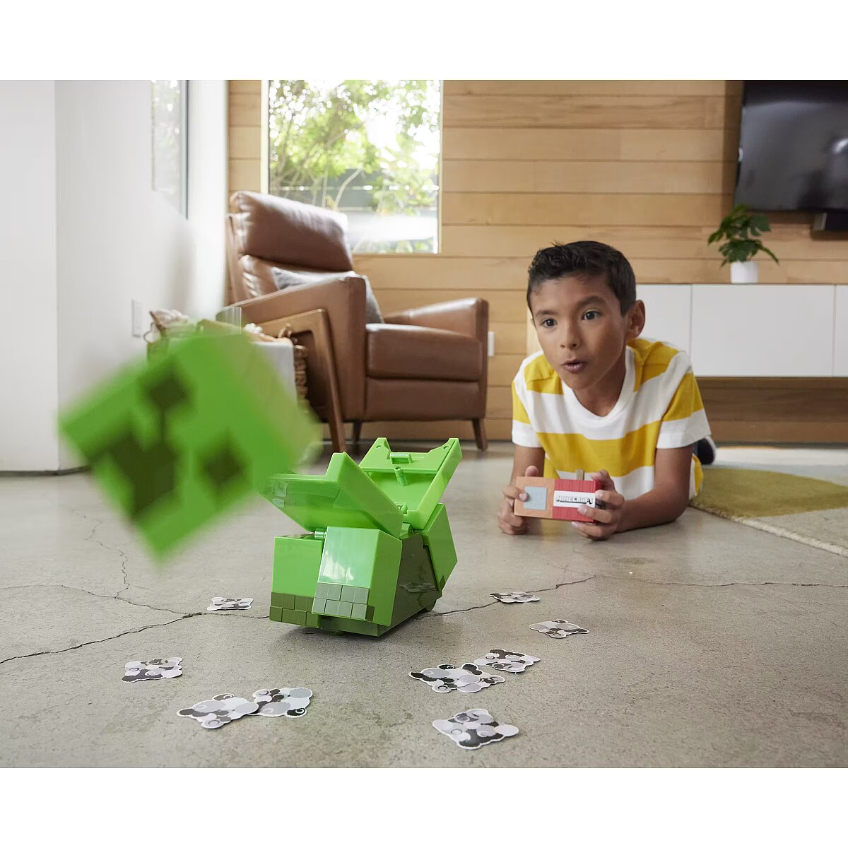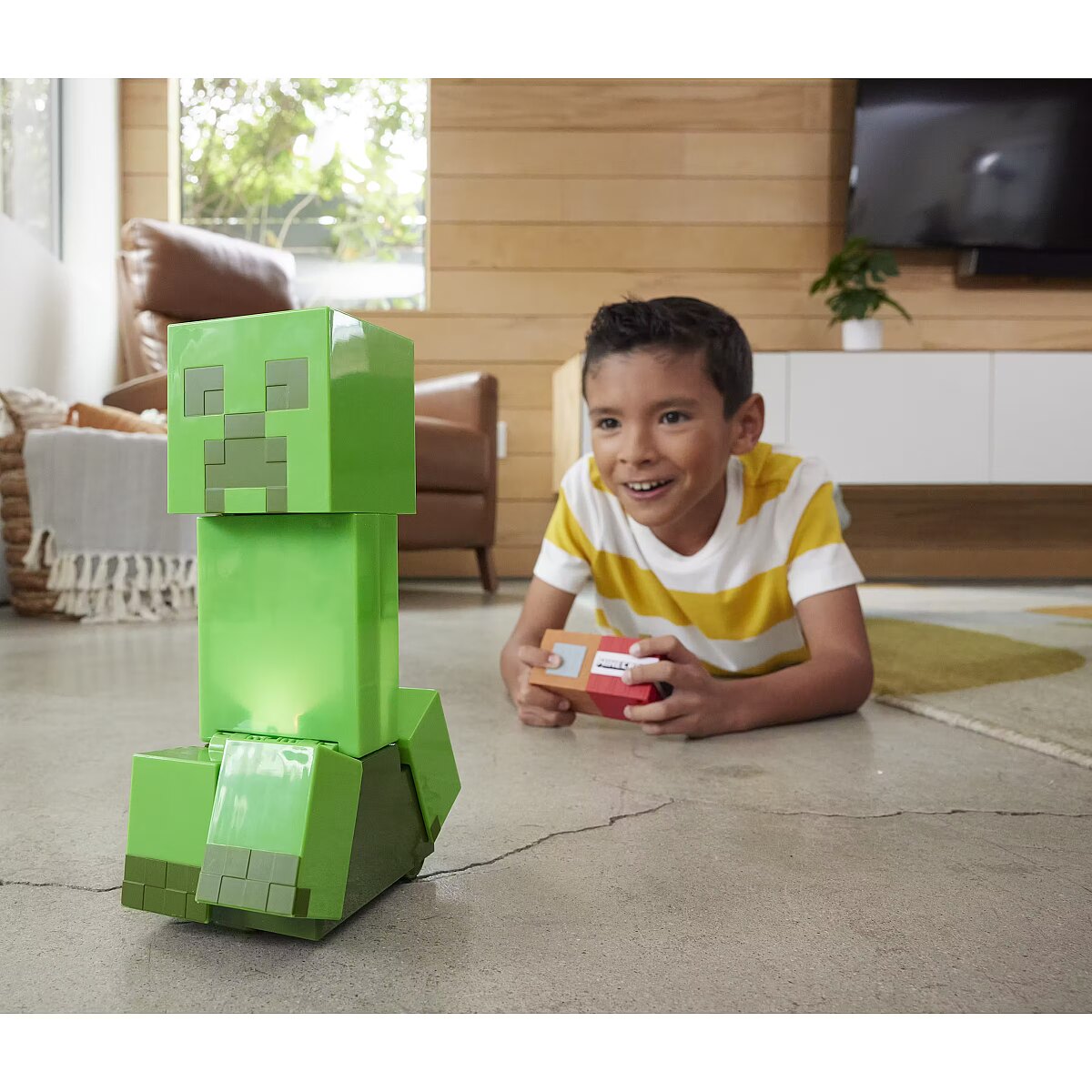 LongDesc - The Minecraft Exploding RC Creeper is the ultimate remote-control figure with game-authentic movement! Load the 10 explosion particles into the Exploding RC Creeper and press the button on the controller for lights and sounds -- then, press and hold to explode and launch the particles into the air! The surprise exploding action is sure to be a hit with Minecraft players and fans -- just press the joystick on the controller to move the Creeper and re-create exciting in-game moments again and again. Plus, the Exploding RC Creeper comes with an exclusive DLC digital item code inside to redeem an in-game accessory! Alkaline batteries should be used with this product. Colours and decorations may vary.