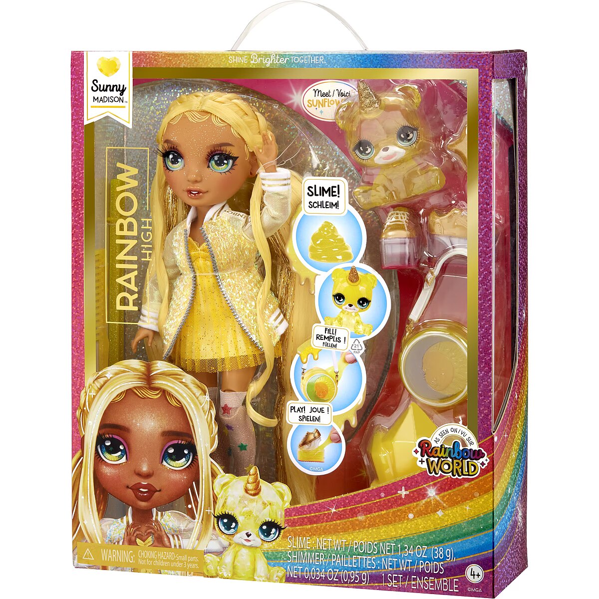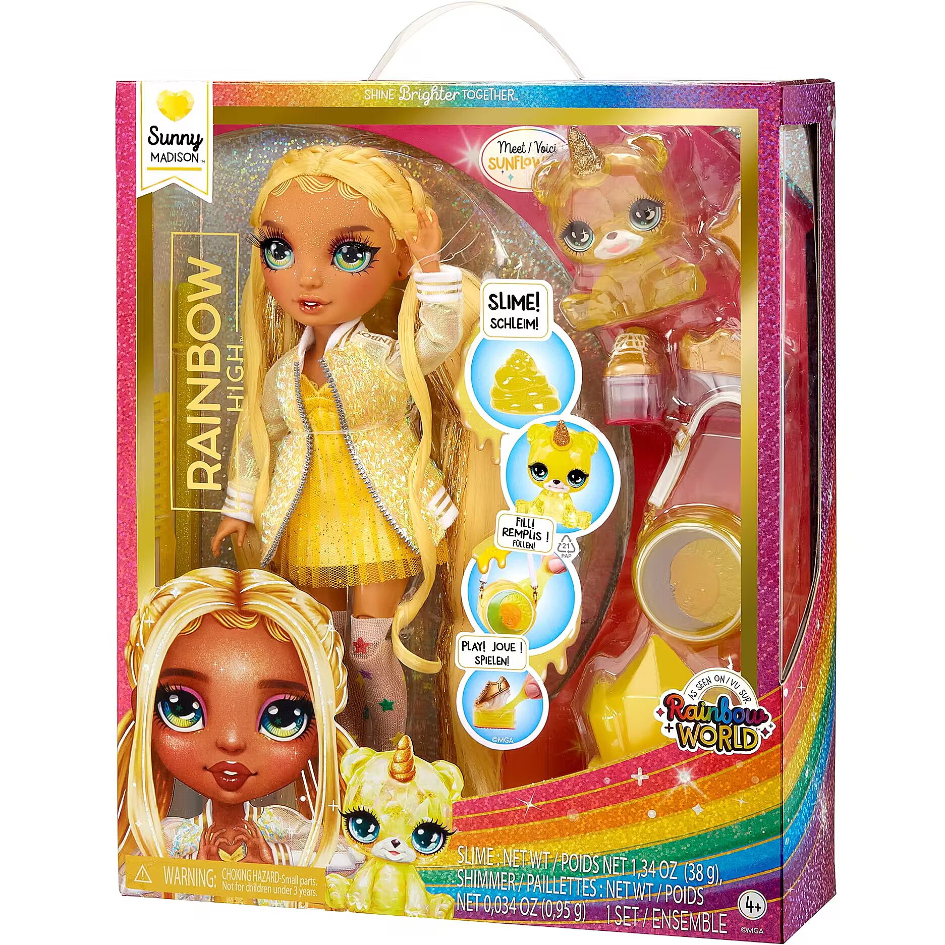 LongProductName - Rainbow High Sunny (Yellow) with Slime & Pet - Yellow 11” Shimmer Doll with Sparkle Slime, Magical Yeti Pet and Fashion Accessories, Kids Gift 4-12 Years