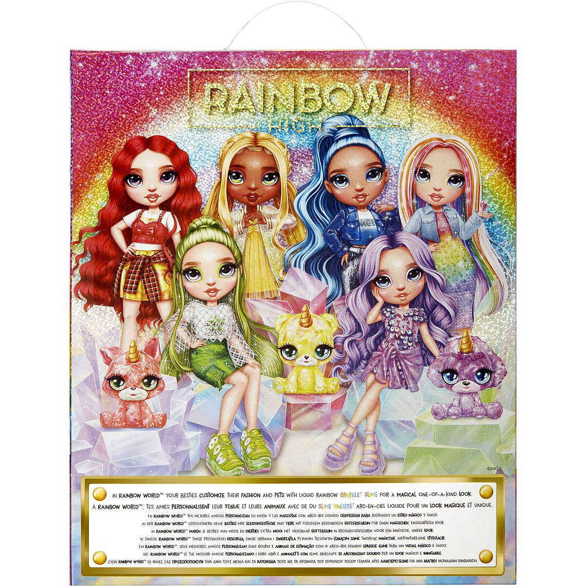 LongDesc - Create and play with your new colorful magical pet, fashion doll with customized accessories in a magical world. Kids will love creating their pretend play stories in Rainbow World, as seen in the hit animated series. The package makes for a perfect gift, it’s a doll + pet + slime. This playset inspires creativity and imagination.WATCH ON YOUTUBE and NETFLIX. Watch the new episodes of the Animated Series on YouTube. And catch up from the beginning on Netflix. Just search for ""Rainbow High”