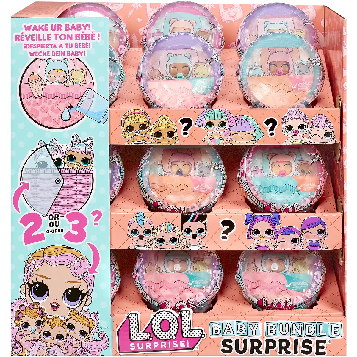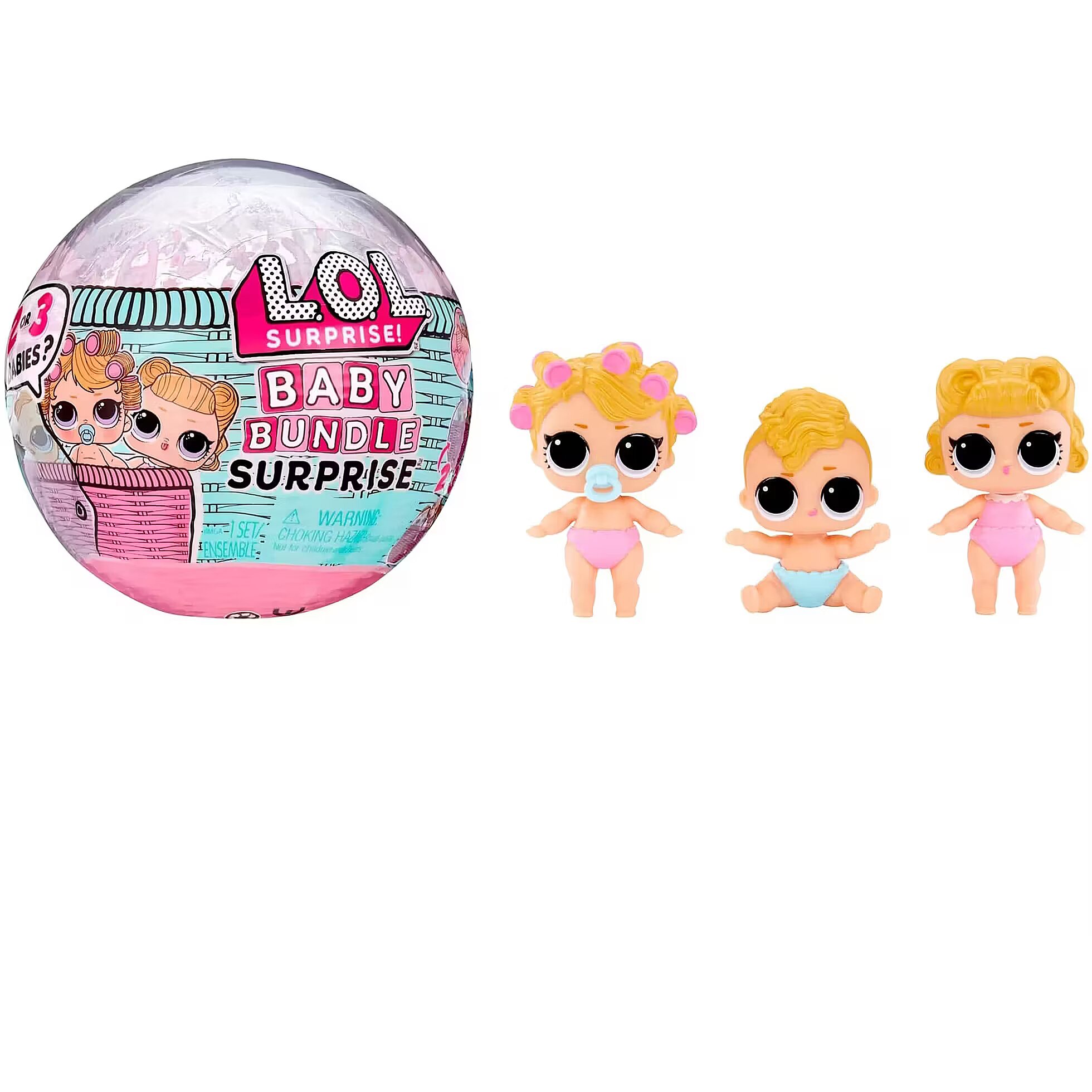 LongDesc - Introducing L.O.L. Surprise! Baby Bundle Surprise™! These babies are fast asleep in their bassinet ball, but you can wake them up with L.O.L. Surprise’s favorite ingredient: water! Just pour a little bit of water onto your baby’s bed and it dissolves to reveal how many babies you get! Will you get twins or triplets? Maybe a Pet is inside! Use water again to rub your baby’s eyes open to wake her up and reveal her eye color! Collect 18 different twin or triplet combinations! Possible combinations include: two Babies, Baby with Pet, 3 Babies, or 2 Babies and Pet, each part of their own mini Baby Bundle family!oLOL Surprise collectible dolls with stylish hair, fun to dress outfits and many detailed accessory pieces make a perfect toy and playset for kids including 4- to 7-year-olds and up girls and boys for imaginative pretend play! As birthday gifts and gifts for any special occasion, dolls provide hours of social play with siblings and friends! From MGA Entertainment, creators of LOL Surprise fashion and collectible dolls, Rainbow High™ fashion dolls, Na Na Na Surprise dolls, Bratz® fashion dolls, MGA's Dream Ella™ fashion dolls, MGA's Glitter Babyz™ baby dolls, Lalaloopsy™, Poopsie Surprise girls' dolls, Baby Born® Surprise Baby dolls and collectibles, Little Tikes® kids' toys and many other favorite brands.