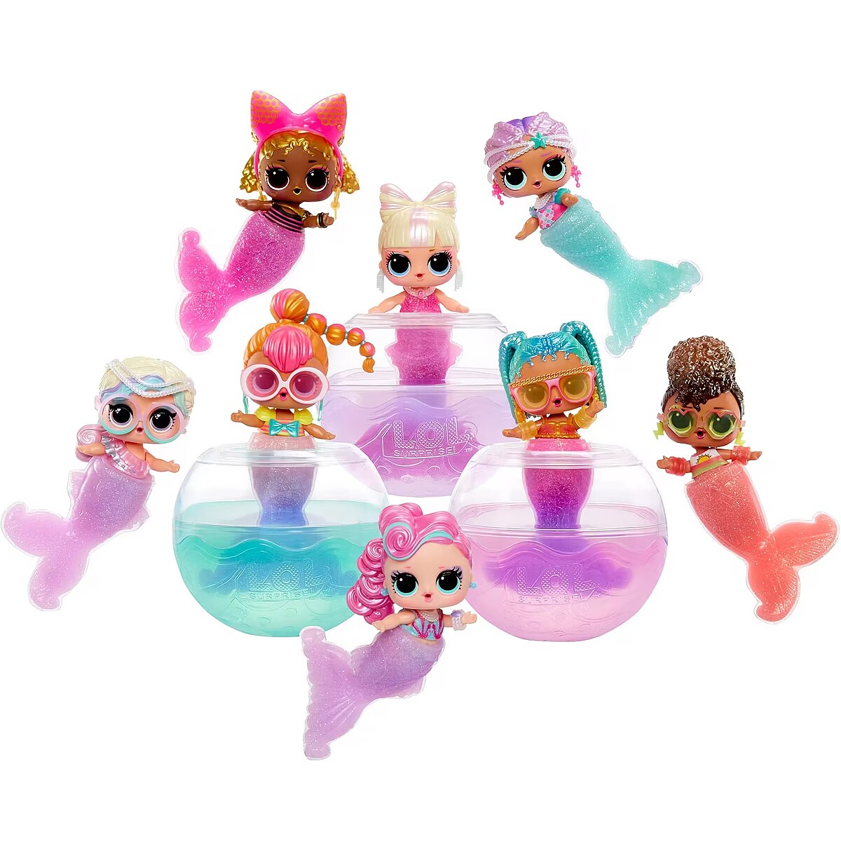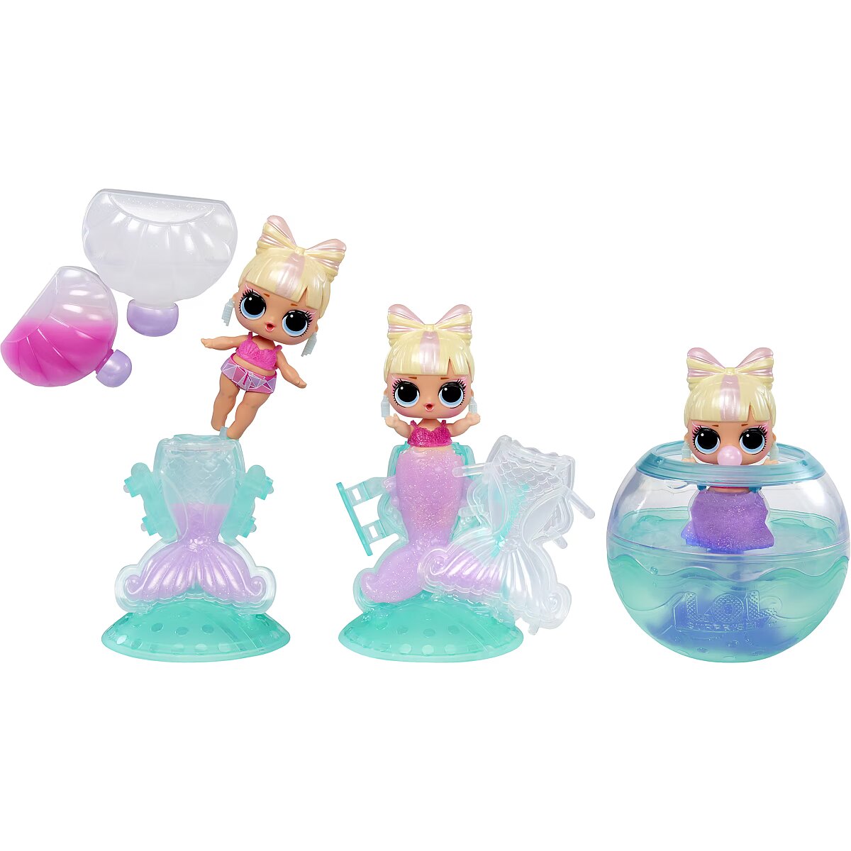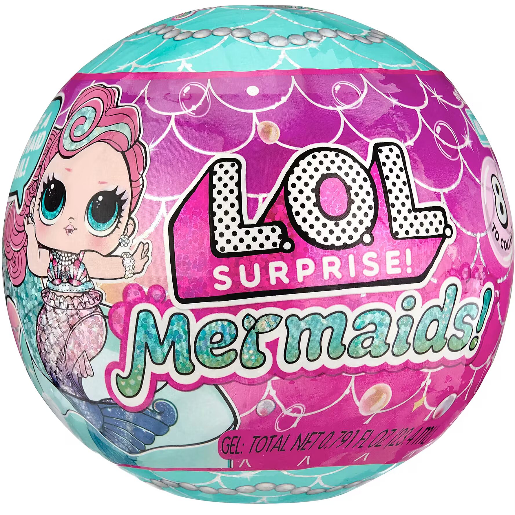 LongDesc - Get ready to make a splash with the adorable LOL Surprise Mermaid! Tots, bringing you an exciting new play pattern to create your own mermaid tails for your Tot!Simply mix the 2 colors of gel, pour them into the tail mold, and let set for 30 minutes to transform into a colorful mermaid tail! Once your Tots are dressed in their stunning new tails, dip them in cold water to reveal a gorgeous color change! Splish and splash around in your LOL ball, which doubles as a fishbowl or hot tub display for your cute mermaids!Collect all 8 LOL Surprise Mermaid! Tots!