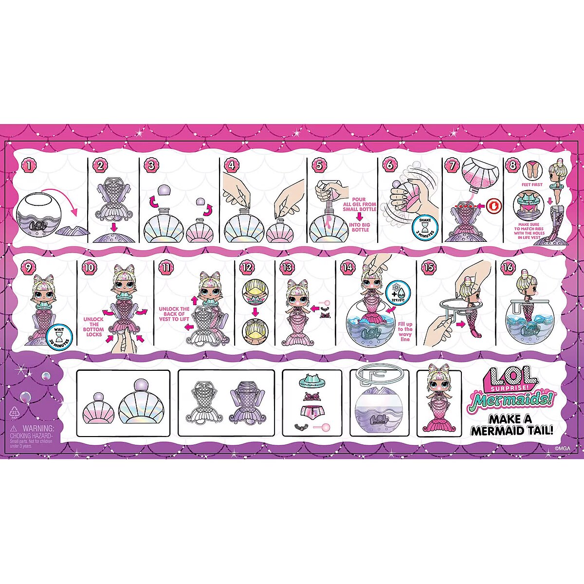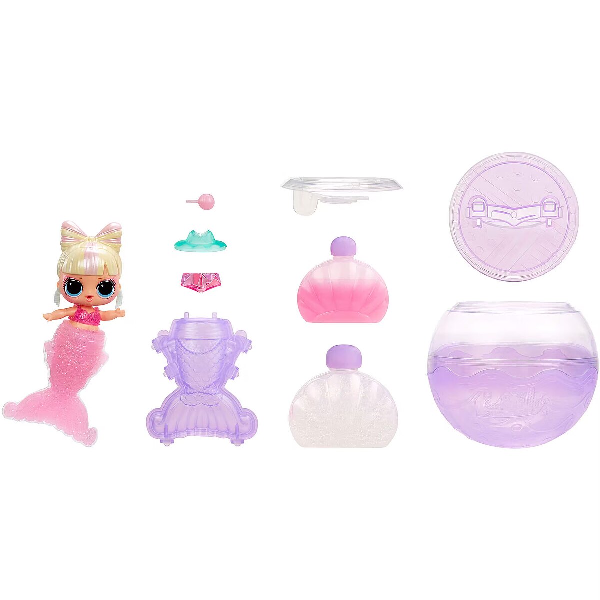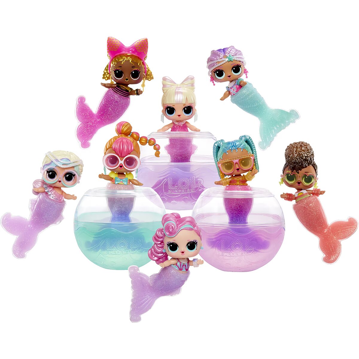 LongDesc - Get ready to make a splash with the adorable LOL Surprise Mermaid! Tots, bringing you an exciting new play pattern to create your own mermaid tails for your Tot!Simply mix the 2 colors of gel, pour them into the tail mold, and let set for 30 minutes to transform into a colorful mermaid tail! Once your Tots are dressed in their stunning new tails, dip them in cold water to reveal a gorgeous color change! Splish and splash around in your LOL ball, which doubles as a fishbowl or hot tub display for your cute mermaids!Collect all 8 LOL Surprise Mermaid! Tots!