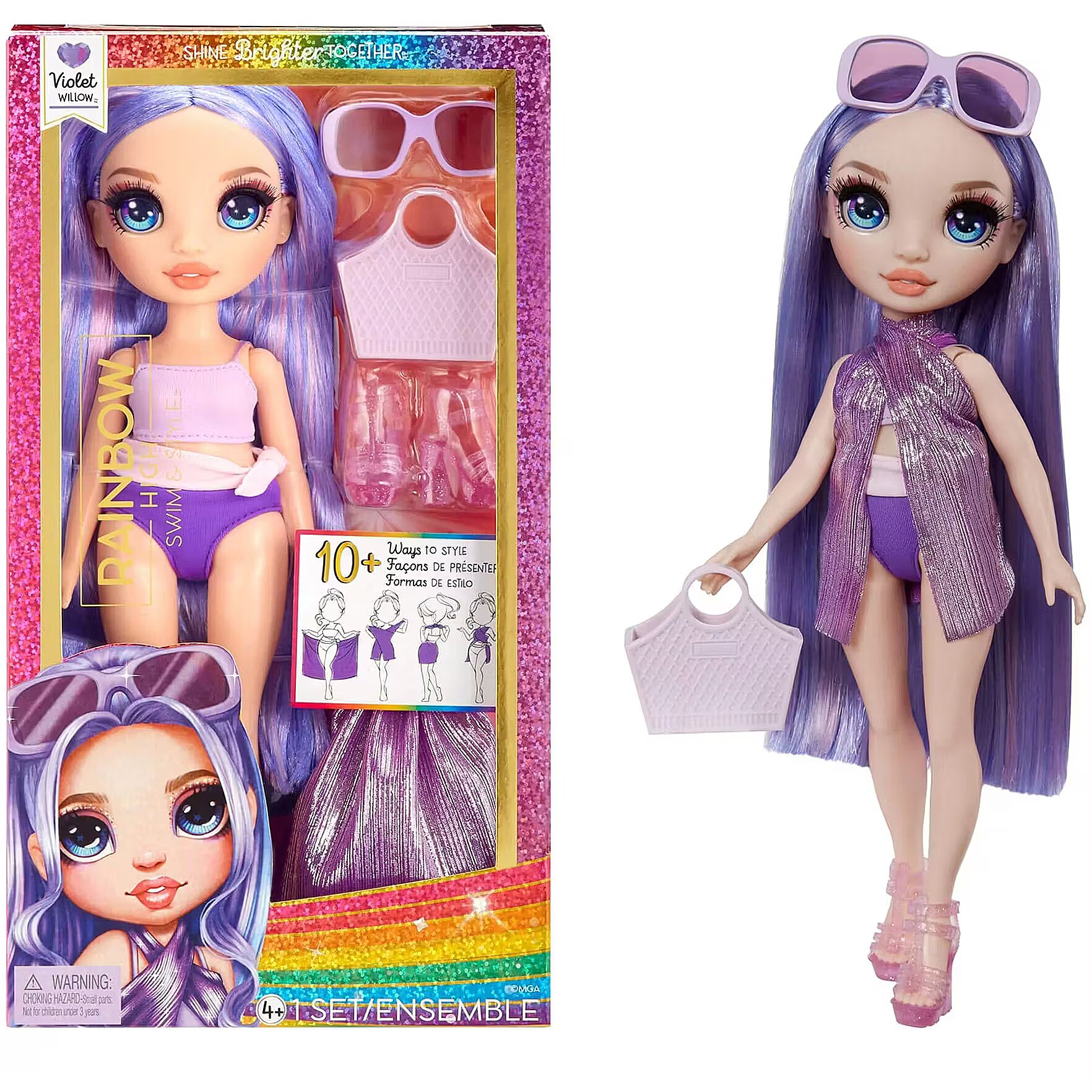 LongProductName - Rainbow High Swim & Style Violet (Purple) 11” Doll with Shimmery Wrap to Style 10+ ways, Removable Swimsuit, Sandals, Fun Play Accessories. Kids Toy Gift Ages 4-12 Years