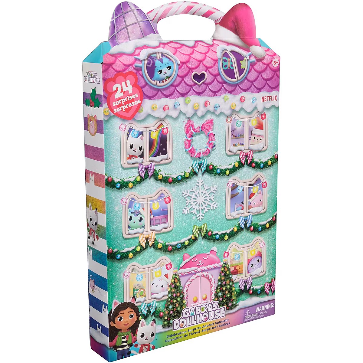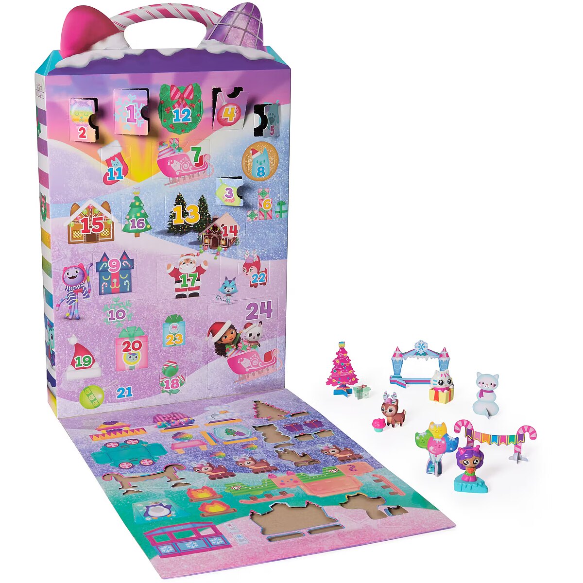 LongDesc - Countdown to the holidays with the Gabby’s Dollhouse Advent calendar! Kids will love discovering different holiday-themed surprises every day! With 24 gifts to find, there's always a new surprise waiting behind each door. Kids will discover Gabby, Cakey & Mercat figures, an exclusive figure with a pearlescent finish, as well as dollhouse furniture, instruments and even a Ferris wheel for the hamster kitties! Once all 24 doors are opened, kids will love creating snow day adventures with Gabby and friends! Gabby’s Dollhouse toys for girls & boys are great gifts for kids who are fans of the hit Netflix series and enjoy building pretend play doll house worlds. Make their entry into dollhouse play memorable with a world of lovable toy figures, dollhouse accessories and dollhouse furniture to collect and configure! Build your world with house kit essentials like a play kitchen or a music room, and tons of items to collect, like an awesome cruise ship toy, a mermaid themed pool and the all-new Party Room Playset - dollhouse attic with an indoor skate park, and super cute dollhouse balconies with mini fidget toys, that provide satisfying sensory play, and work seamlessly with both versions of the dollhouse!Includes: 1 Advent Calendar, 24 Surprise Toys & Accessories