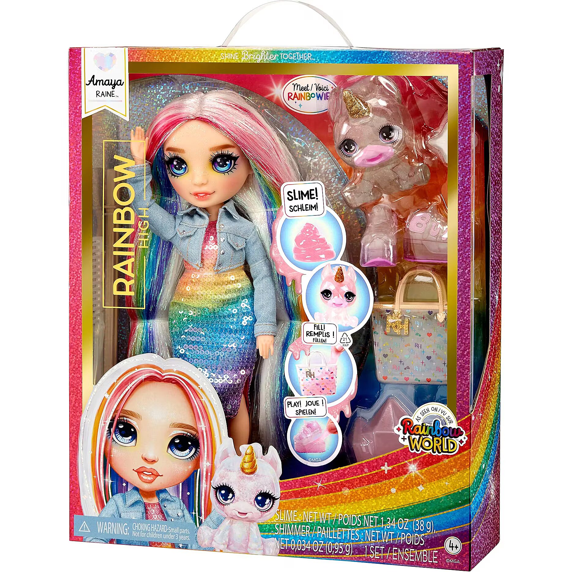 LongProductName - Rainbow High Amaya (Varavīksnes) ar slizgainu mīluli - varavīksnes 11" mirdzoša lelle ar mirdzošu slizgainu mīluli, maģisko Yeti mīluli un modes aksesuāriem, dāvana bērniem no 4 līdz 12 gadiem