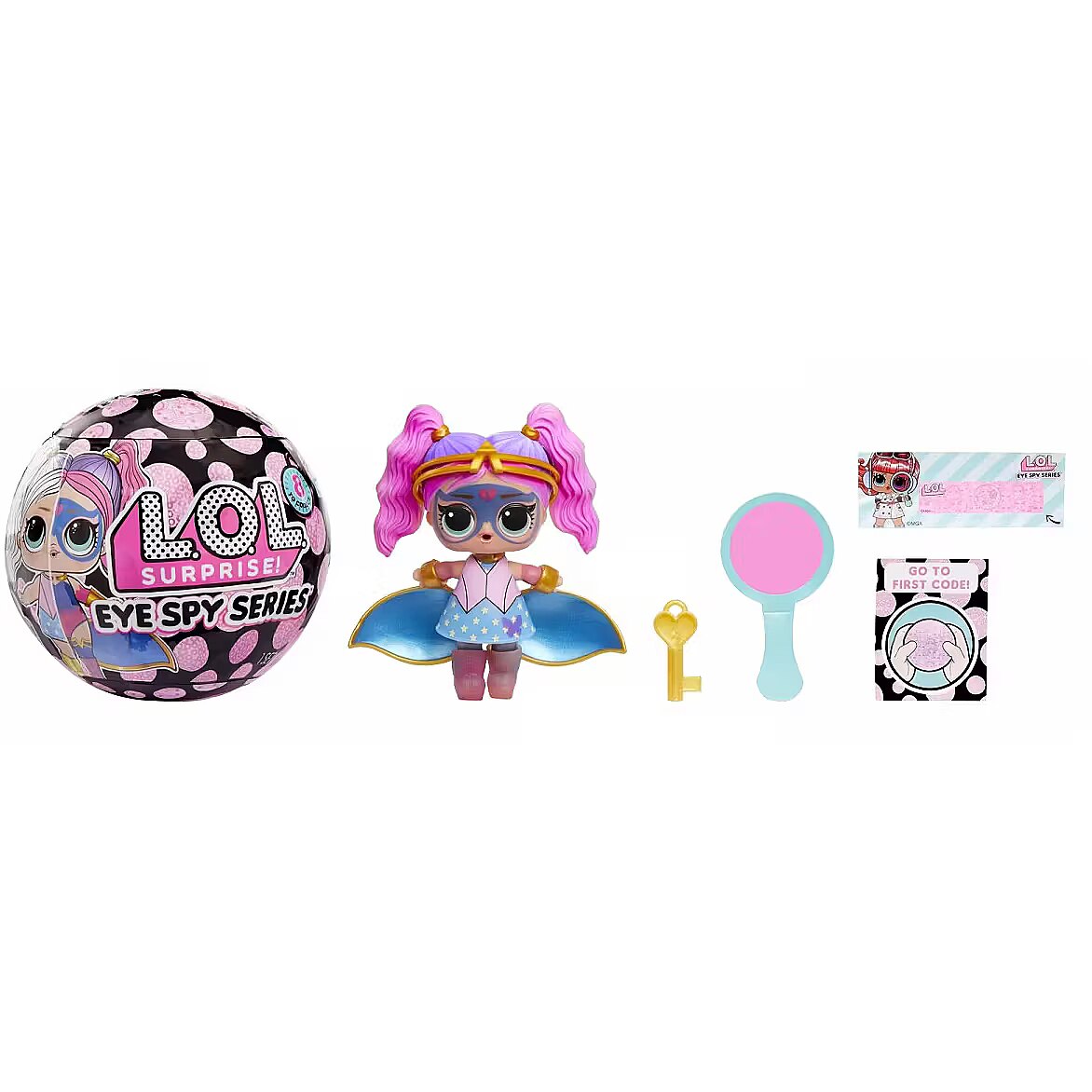 LongSummaryDescription - L.O.L. Surprise! L.O.L. Surprise Eye Spy Tots Asst in PDQ. Doll type: Mini doll, Doll's gender: Female, Recommended age (min): 4 yr(s), Suggested gender: Boy/Girl, Material: Plastic, Product colour: Assorted colours
