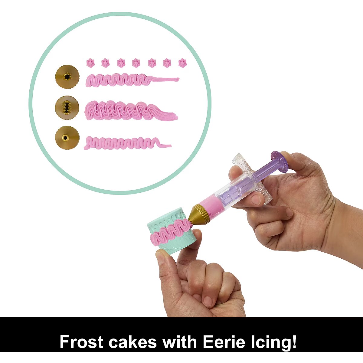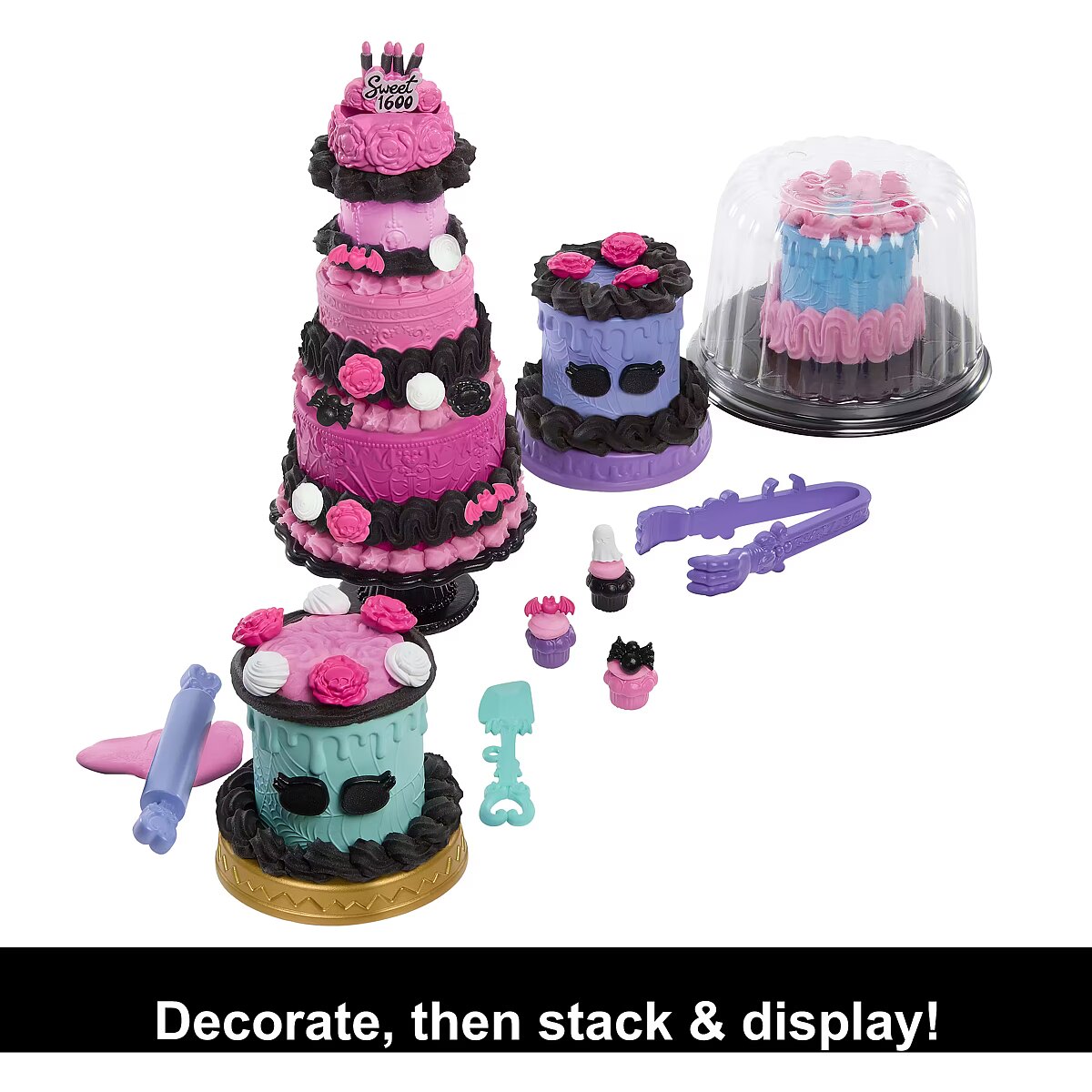 LongDesc - Help Clawdeen Wolf doll make creepy cute cakes with the Monster High Scary Sweet Birthday Cake Kit! Draculaura is turning 1600, and there's no better gift than bringing desserts to her bewitching birthday bash. Decorate the cakes with Eerie Icing and cake toppers, then stack and display! With over 20 accessories, there are so many ways to get creative. Kids 4 years and up will love getting crafty with Clawdeen Wolf! Doll cannot stand alone. Dough not edible. Colours and decorations may vary.