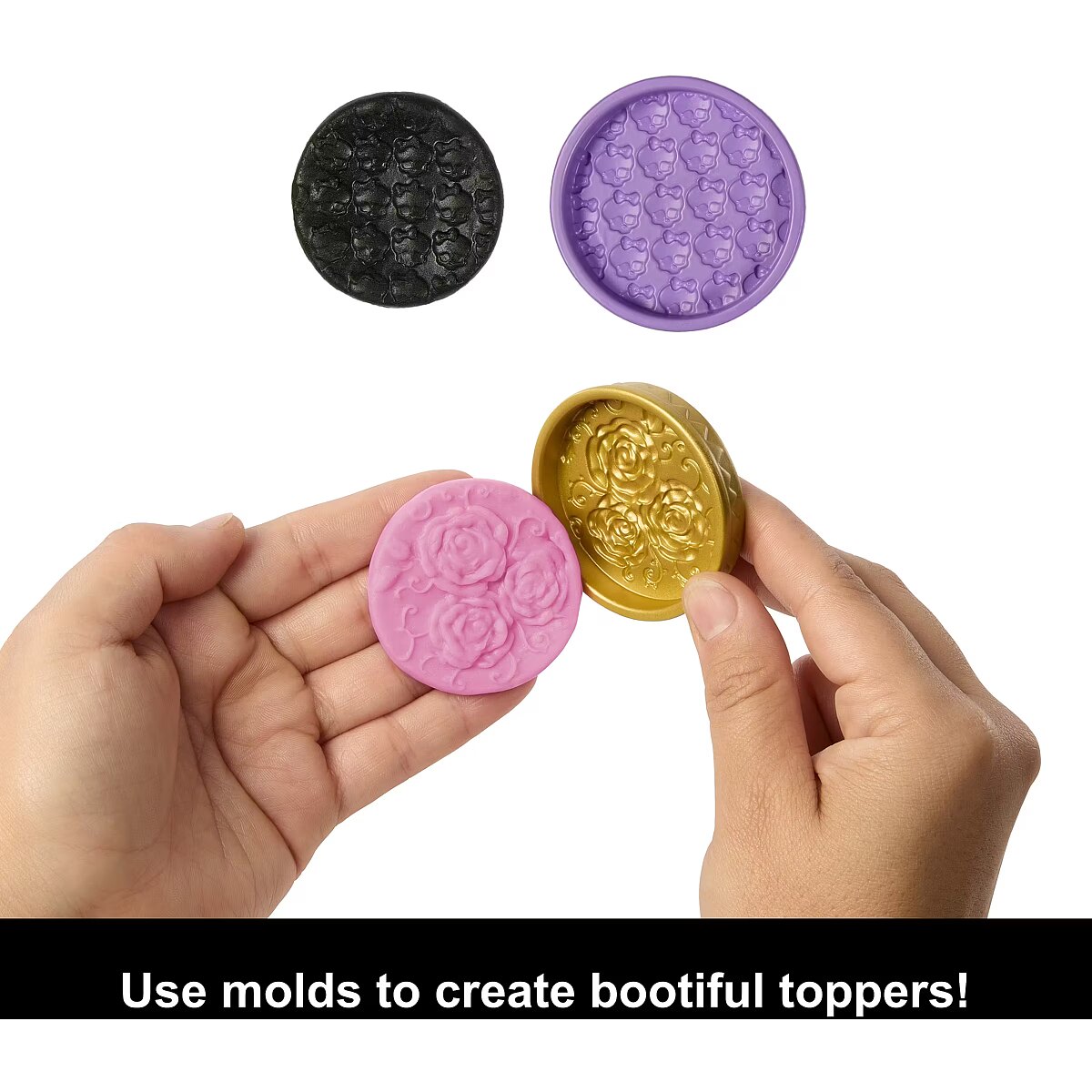Packaging content - Packaging content - Includes 1 Clawdeen Wolf doll, 6 cakes, 6 cupcakes, 1 cupcake tray, 1 spatula, 1 rolling pin, 1 pair of tongs, 2 cake pan molds, 1 icing pipette, 3 icing nozzles, and lots of cake topper accessories. Dough not edible. Doll cannot stand alone. Colours and decorations may vary.