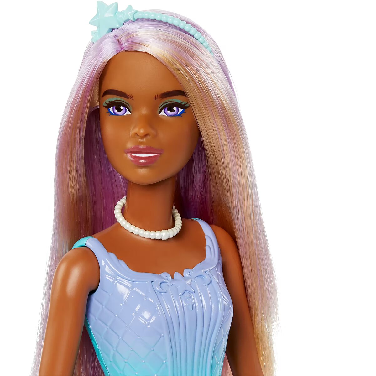 Description - Lalka Barbie Księżniczka z długimi włosami, niebiesko-fioletowy strój