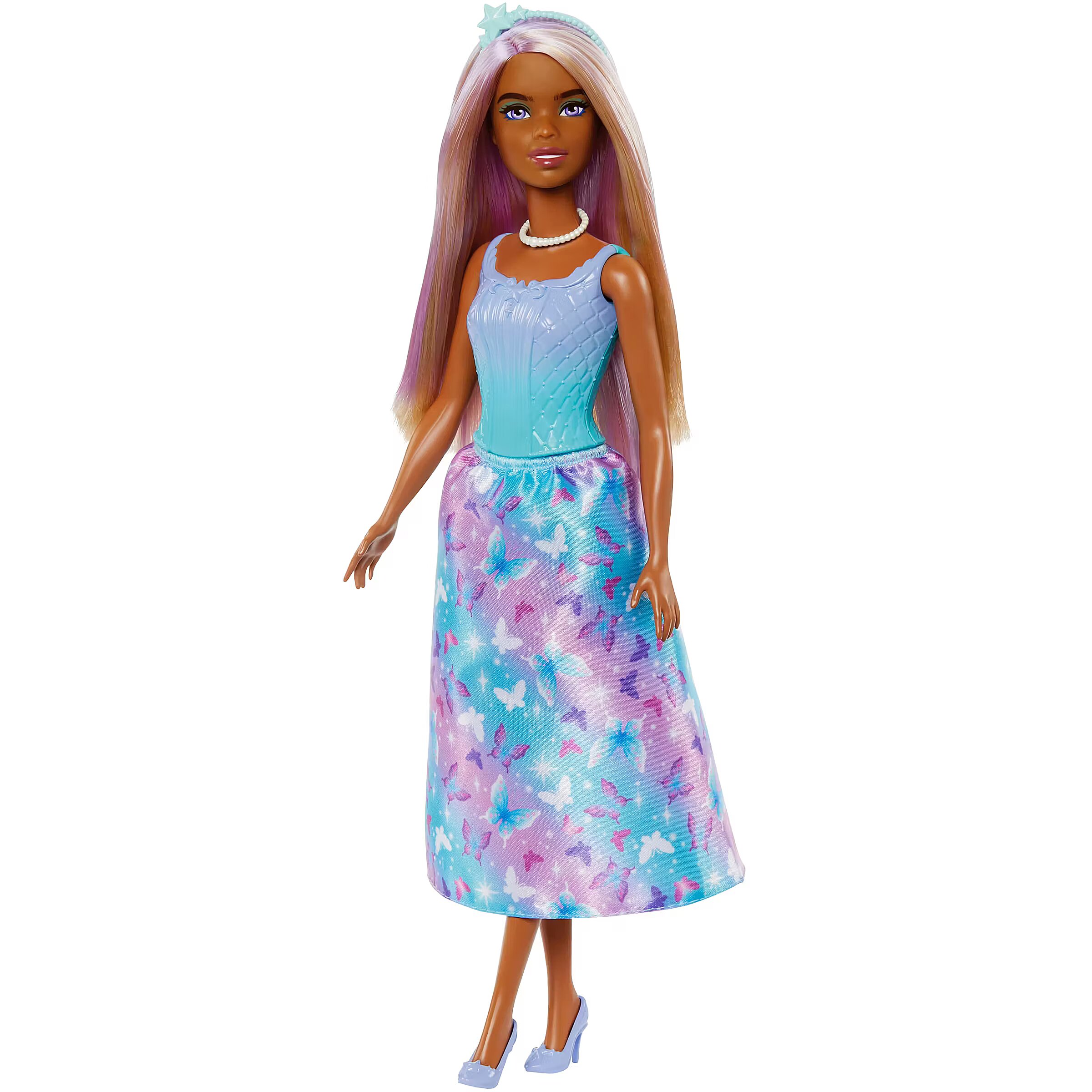 Title - Barbie Royal Doll with Purple-Highlighted Hair, Butterfly-Print Skirt & Accessories