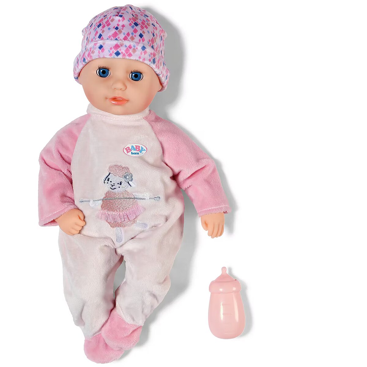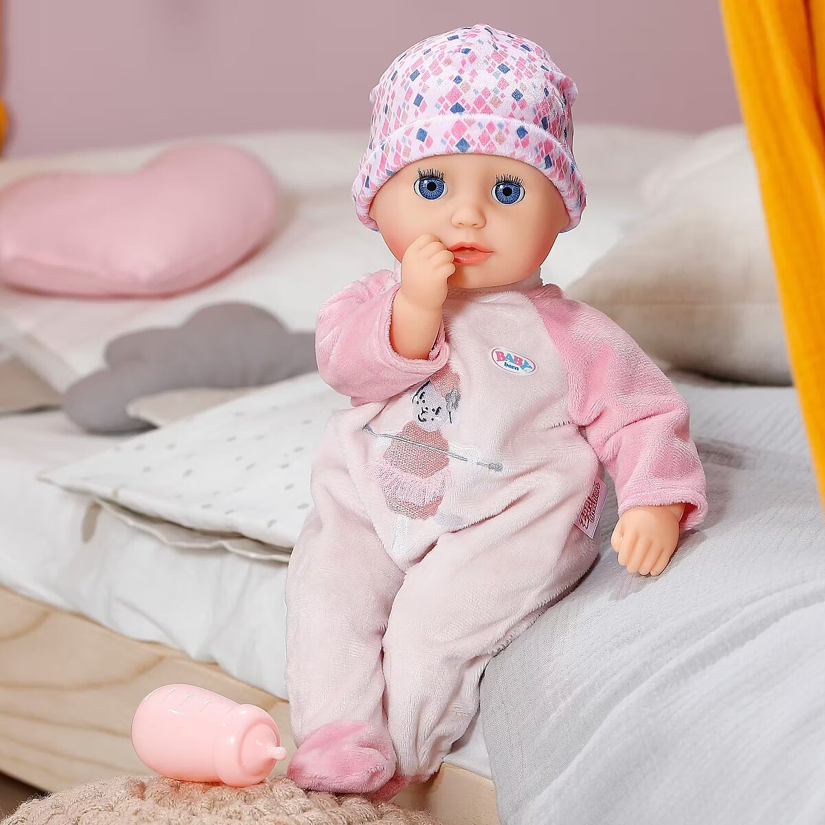 LongProductName - BABY born Anna Rose, mīksta 36 cm liela lelle ar auduma ķermeni, rozā kombinezoni un aizvērtām acīm, ieskaitot pudeli