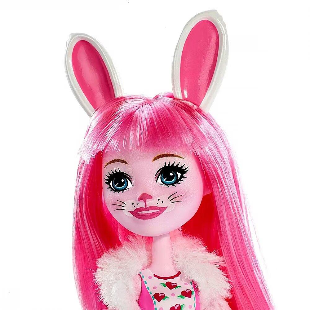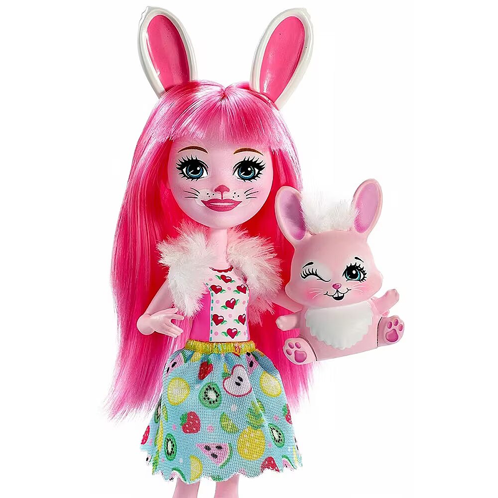 LongDesc - Let the adorable Enchantimals dolls and their animal friends enchant you. Bree Bunny doll shares a special bond with Twist bunny -- they're always together, and they look alike, too! Always bubbling with creativity, Bree Bunny doll (6-inch) wears a cheery outfit with fun prints, a fur shrug, and bright yellow shoes. Little ones will adore her long pink hair and enchanting details that match her animal bestie, like bunny ears and a bunny tail. Twist figure has charming touches, too, like a patch of furry white hair and tiny pink paws. Kids will love playing out the special bond these two friends share and creating their own Enchantimals adventures! Collect them all to build out your whimsical world of Enchantimals (each sold separately, subject to availability). Includes one doll wearing fashion and accessories and animal figure. Colours and decorations may vary.