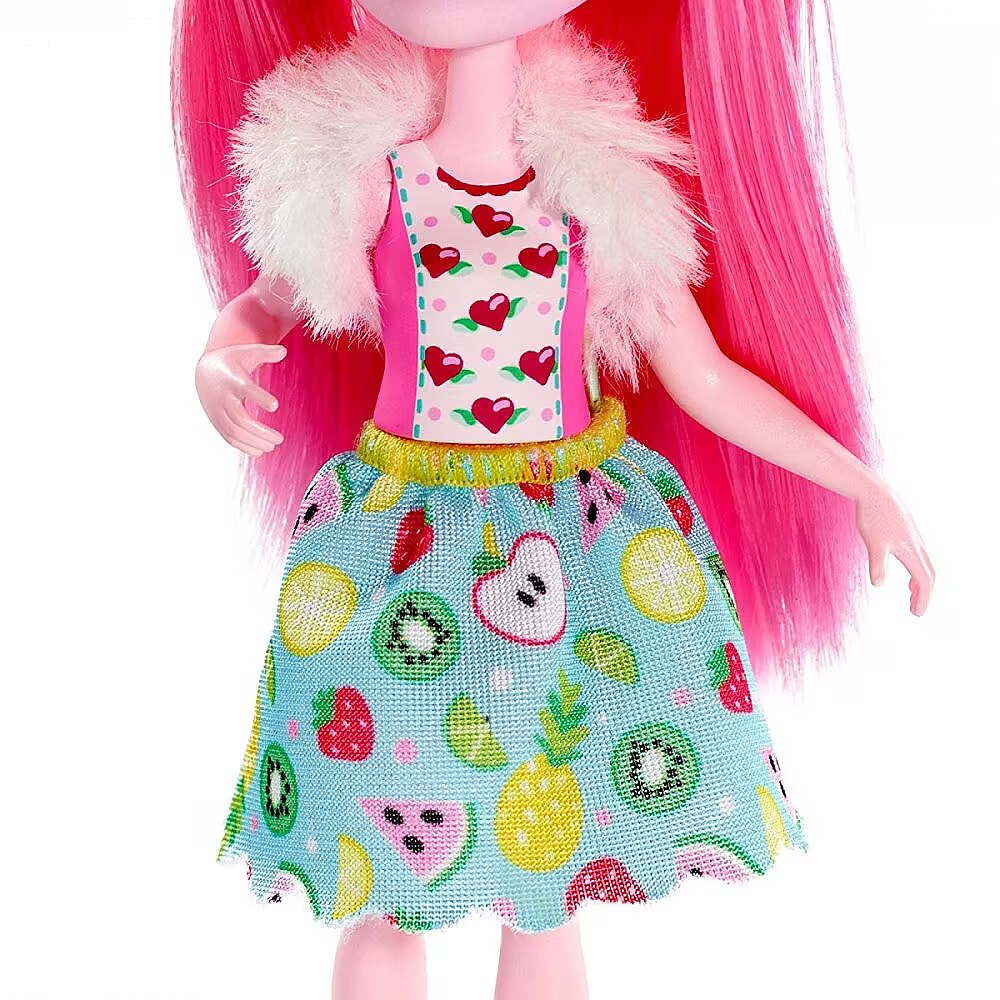 Each 15-centimeter doll is wearing a unique set in bright colors, with a floral pattern and fur. Inspired by the land of animals protruding ears and fancy hair accessories give them charm.