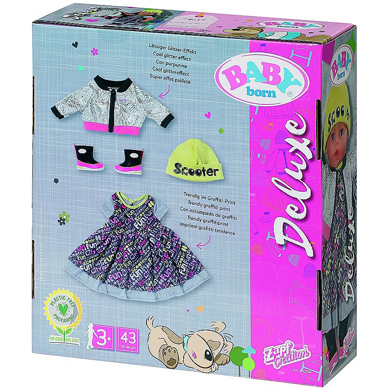 LongSummaryDescription - BABY born City Deluxe Style. Product type: Doll clothes set, Recommended age (min): 3 yr(s). Weight: 180 g