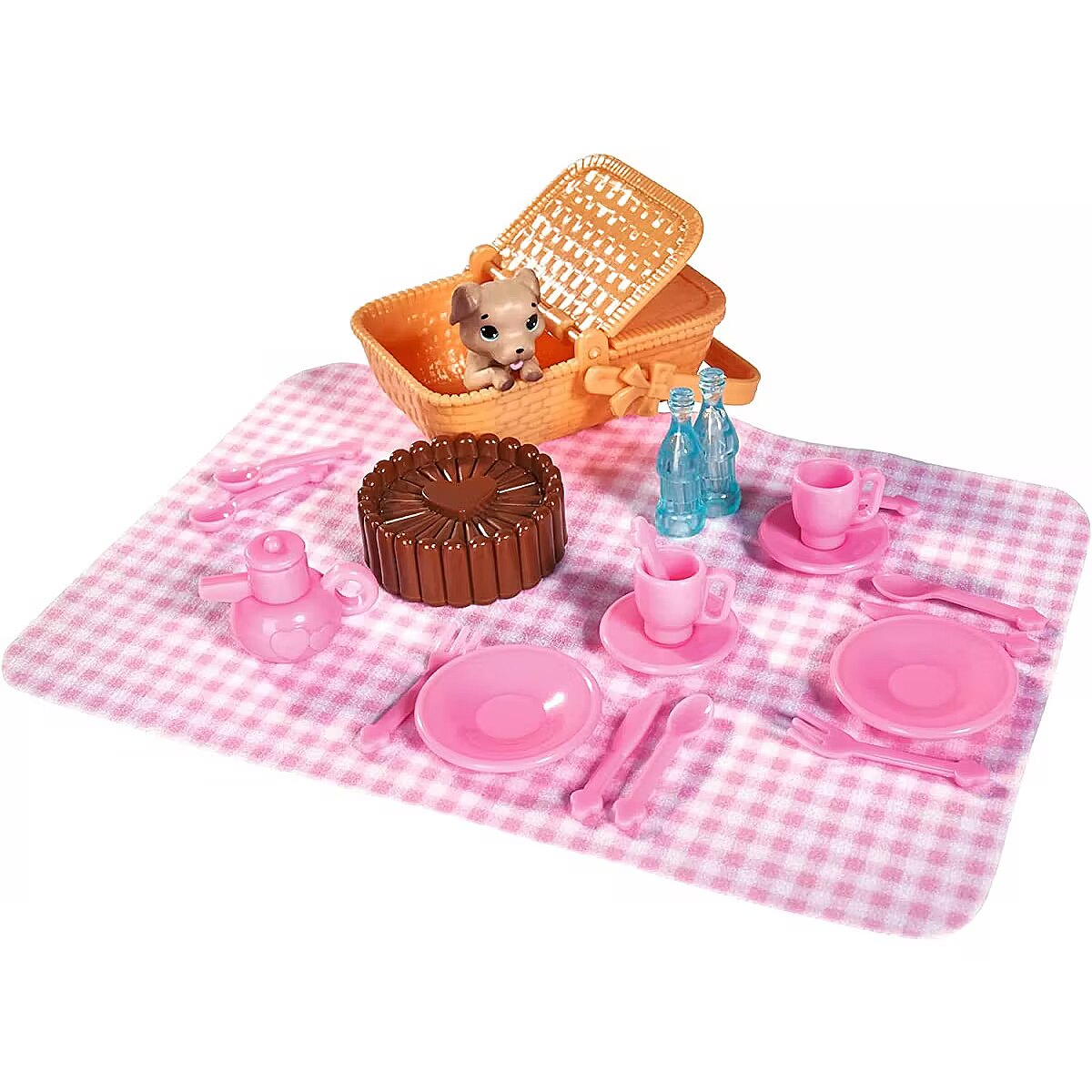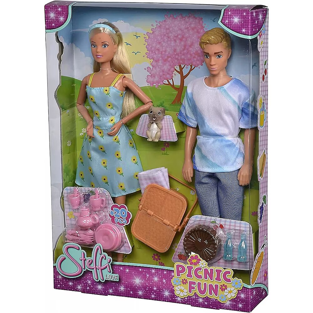 Description - Steffi Love Steffi and Kevin on a picnic Steffi, Kevin and their cute little dog on a picnic, the set includes a picnic basket, a blanket, up to 16 accessories in total. JOINT ADVENTURE ON A PICNIC: Steffi and Kevin take us on an adventure together. The pastel styling is fitting for a summer outing. They are accompanied by a small dog. They are provided with a blanket, a picnic basket and a set of accessories for serving and eating a meal. DIVERSITY OF THEMATIC SETS: in the Steffi LOVE range you will find sets that allow you to take on everyday roles: shopping, picnic in the park, horses, doctor sets, car trips. DEVELOP SOCIAL SKILLS: girls love to play role-play with several dolls, thus developing social skills and enriching their imagination. MULTIPLE PLAY POTENTIALS: clothes can be changed at will, accessories can be arranged in different ways and a set of two dolls with accessories can be played with for hours. SIZE AND SIZE: Steffi doll is 29 cm tall and Kevin is 30 cm tall and are suitable for children over 3 years old. Steffi Love provides a range of play options, with a variety of styles and set variations to suit girls' interests, dream professions and how they like to spend their time. Steffi Love sets support children's emotional development, help shape emotions and develop a sense of responsibility and caring in toddlers.