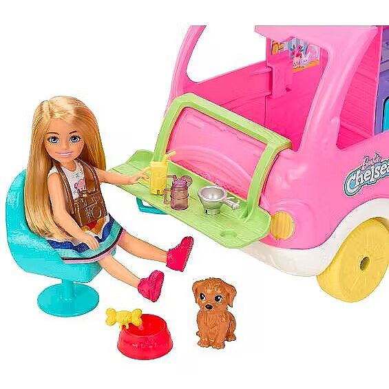 LongSummaryDescription - Barbie Chelsea 2-in-1 Camper Playset with Small Doll, 2 Pets & 15 Accessories. Doll type: Fashion doll, Doll's gender: Female, Recommended age (min): 3 yr(s), Suggested gender: Girl. Height: 190 mm, Weight: 794 g. Material: Plastic, Product colour: Multicolour