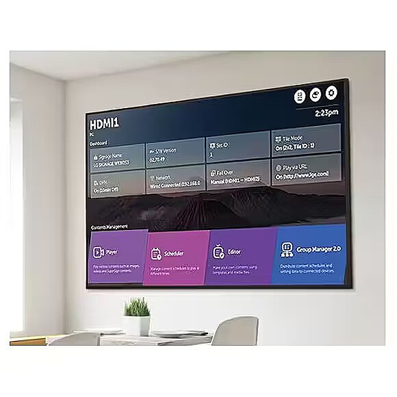 LongDesc - Large UHD Signage Display with Slim DesignEye-catching Large ScreenA large screen effectively captures people's attention. Especially, 75-inch model supports 60Hz, enabling smooth content operation.Sturdy Design with Fire Flame ResistanceThe outer cover of the product is designed to effectively resist fire flame spread, making the product a great fit for installation in public spaces.* Based on third party testing, the case top and back cover of the product are classified Class A1 (case top) and A2 (back cover) under EN13501-1, Class 1 under BS476 Part 7.Slim Depth with Even BezelDespite its large screen, UH5N-M boasts a slim depth, which is advantageous for interior design. To avoid visual issues when adjusting to portrait mode, the bezel maintains uniform thickness on all four sides, providing even symmetry on the top, bottom, left, and right. Therefore, it is a model suitable for various styling options.Versatile Operation with Multi-USBWith support for two USB ports, UH5N-M offers versatile usage options. For example, operating content on the screen while simultaneously using other connected devices is possible. This includes convenient tasks like downloading PPT files from external storage devices while using a mouse or keyboard during a meeting.High Resolution DisplayIt offers a resolution that is four times higher than FHD, satisfying customers visually. Additionally, the anti-glare coating on the screen reduces screen reflection in bright lighting environments, increasing visibility and legibility, providing customers with a comfortable screen.Convenient webOS PlatformThe UH5N-M is equipped with a high-performance SoC that allows for multiple tasks to be performed without a separate media player. The webOS platform provides app development tools with an intuitive UI that enhances user convenience, enabling easy connection with external sensors and webOS partner apps to create an SI-friendly environment.Durability that Provides ReliabilityOptimized for business environments, the UH5N-M is protected against rust and dust with conformal coating and IP5x certification, allowing for stable operation.Enhanced Security FeaturesThe UH5N-M provides advanced security features, including LG's Enhanced Kernel Protection (EKP) technology, protecting important data from external access or attacks. LG UHD Signage also holds reliable certifications in the field of information security, maintaining customers' data and businesses securely. For example, this model is ISO/IEC 15408 Common Criteria EAL2 Certified.SuperSign SolutionsSuperSign is an integrated and intuitive content management solution for creative and organized digital signage content in your space, connecting customers to a range of services with convenient user experiences. There are a variety of versions such as SuperSign Cloud, so discover and enjoy the version that best fits you.