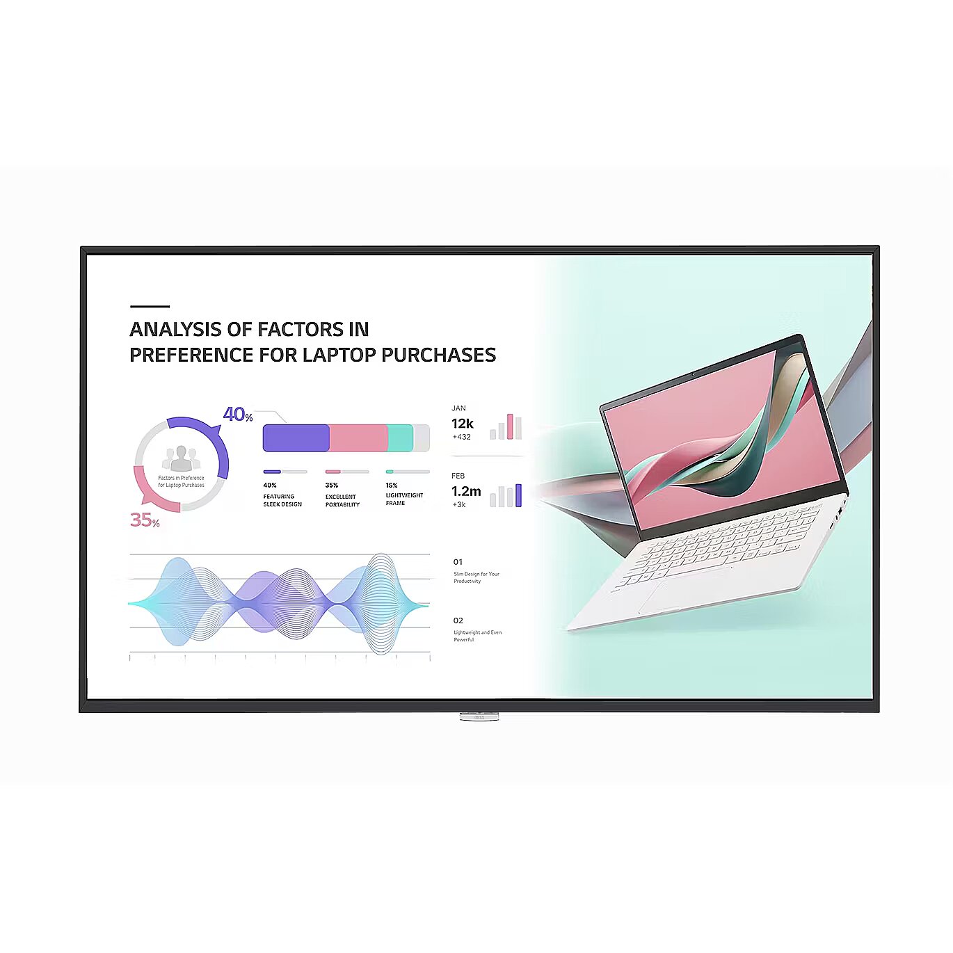 LongDesc - Appropriate Display BrightnessWith a recommend brightness of 500 cd/m² for indoor display, the UH5J-H series clearly delivers content and attracts public attention, making it the most suitable display for marketing in meeting rooms, airports, retail, shopping malls, etc.High-Performance with webOSLG webOS platform enhances user convenience with intuitive GUI and simple app development tools.Conformal CoatingIn various places the UH5J-H series is unable to avoid exposure to environments containing dust, humidity, etc. which may hamper performance over time. The conformal coating on power board reduces these risks by protecting UH5J-H series from salt, dust, iron powder, humidity, etc.Mobile Content ManagementYou can create a store profile and get template recommendations using the Promota* app. Users can customize templates as needed and easily create and manage content not only on PCs but also on mobile devices.IP5x Certified DesignThe IP5x Dust-Proof Certification ensures that the product is protected from dust, reducing the risk of performance degradation.Compatible with AV Control SystemThe UH5J-H series has supported Crestron Connected® for high compatibility with professional AV controls to achieve seamless integration and automated control, boosting business management efficiency.