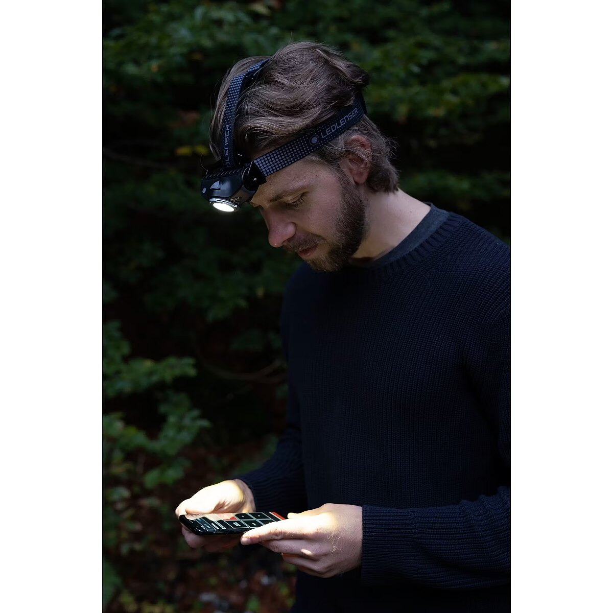 Technical_details - The MH11 from Ledlenser is a headlamp with a rechargeable battery and Bluetooth function. It achieves a luminous flux of up to 1000 lumens, a lighting range of up to 320 meters and a lighting duration of up to 100 hours. It can be controlled via Bluetooth with a smartphone and then also via an app. This light has a total of six light settings and can light up in red, green or blue for various applications with the RGB front light. The Transportation Lock prevents accidental switching on. It weighs only 179 grams, making it a lightweight and extremely flexible companion for outdoor use. Item no.: 1594710 Luminous flux of the lamp 1000.0 lumens Type LED light Color grey/dark grey EAN 4058205013833 Manufacturer no. 500996 Use camping lamp, headlamp Details 1x Xtreme LED Light range 320 meters Battery operating time 100 hours Power supply detail battery with 11.52 Wh Operation six light settings: Power, Low Power, Mid Power, Boost (short-term maximum power), flashing, SOS, Strobe (flashes of light with an irritating blinding effect for self-defense). The light intensity can be continuously regulated. Adjustable light colors: red light for reading and night vision, green LED for signaling and animal observation, blue LED for signaling and tracking. Integrated low battery warning function, charge level indicator. Protection IPX4 (protection against splash water), IPX5 (protection against dust) Further information magnetic charging cable Weight 179 grams