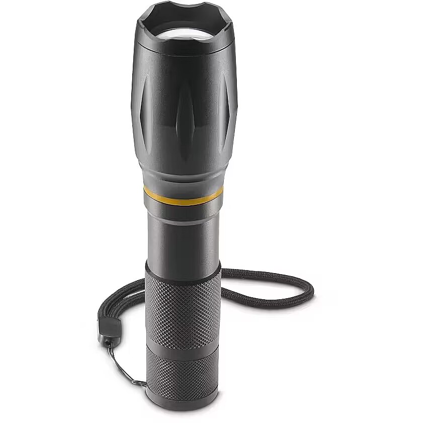 LongDesc - Powerful and robust LED torch for the toughest conditions in the workshop, vehicles, outdoor and leisure activities3 light modesAdjustable in 3 modes: the right light mode for every situation - a white LED with bright light, dimmed light and flashing lightZoom functionFocussable torch: adjustable light cone for perfect illumination of near and far areas, ideal for going into detail, but also for the big pictureHigh-brightness COB LEDLight range plus: the COB LED on the side, which can also be activated, illuminates evenly and over a large area