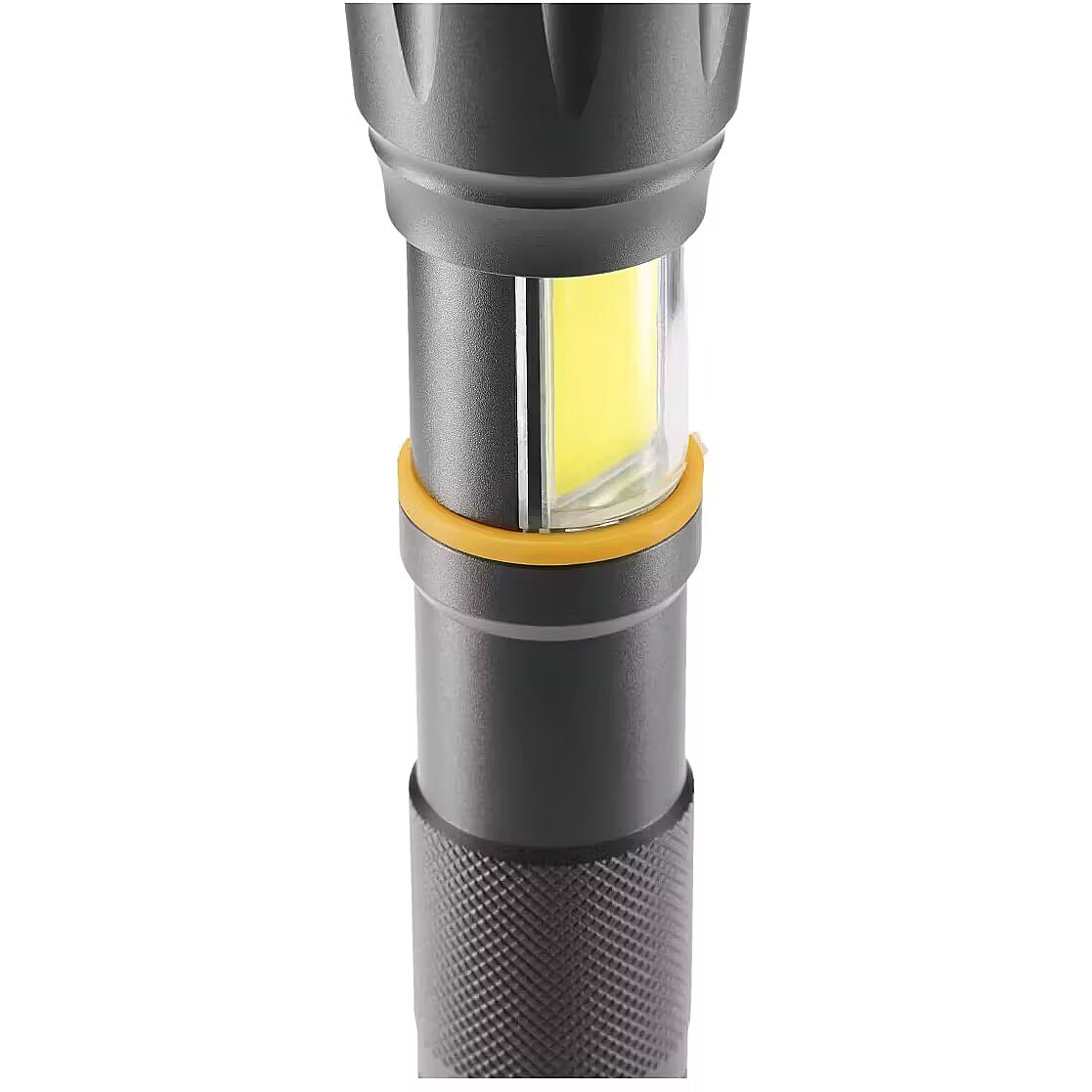 LongDesc - Jaudīgs un izturīgs LED lukturītis vissmagākajiem apstākļiem darbnīcā, transportlīdzekļos, brīvā dabā un brīvā laika pavadīšanas laikā3 gaismas režīmiRegulējams 3 režīmos: katrai situācijai piemērots gaismas režīms - balta LED ar spilgtu gaismu, blāvu gaismu un mirgojošu gaismuZoom funkcijaFokusa lukturītis: Regulējams gaismas konuss ideālai tuvāku un tālāku teritoriju izgaismošanai, ideāli piemērots ne tikai detalizētai iedziļināšanai, bet arī plašam skatamSkaidrās COB LED gaismas diodesLight range plus: sānos esošā COB LED diode, ko var arī aktivizēt, izgaismo vienmērīgi un lielu platību.