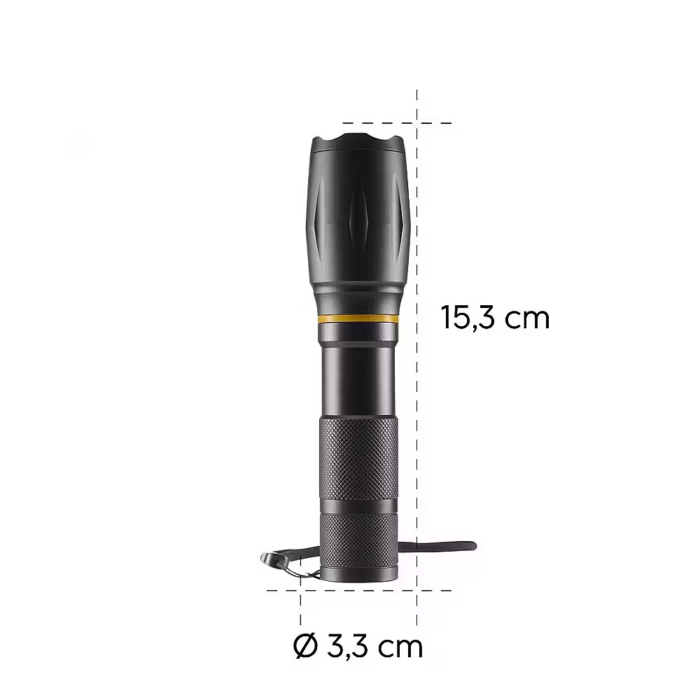 ShortDescription - 2-in-1 LED lukturis, 200 lm, 100 m, 3 gaismas režīmi, tālummaiņa