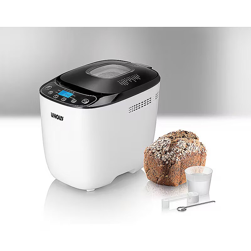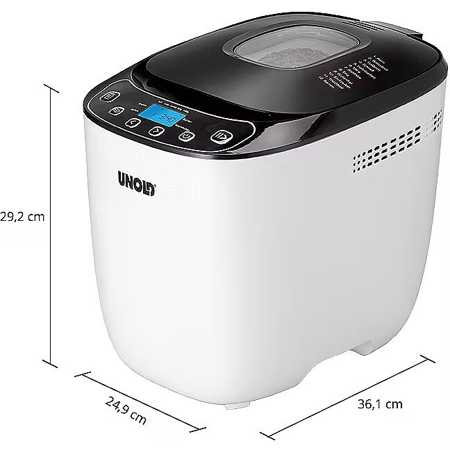 LongDesc - With twelve programs, the BPA-free BACKMEISTER® Design bread machine delivers bread variations from 700 to 1,000 grams. Whether gluten-free bread, bread size or browning level: everything can be selected via the LCD display. The baking process can be pre-programmed for up to 13 hours using the time selection button, and after baking the bread is kept warm for up to 60 minutes. In the event of a brief power failure, the power failure protection continues the baking process. Convenient thanks to the cool-touch housing, large viewing window and anti-slip feet.