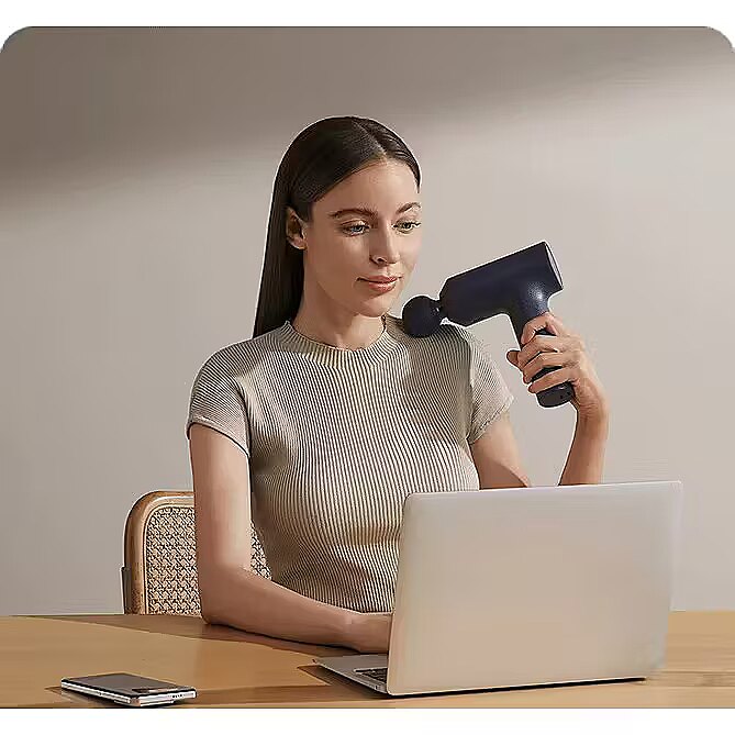 Relieve fatigue and soreness quickly. A custom brushless motor generates less noise and reduces vibrations. A 25kg-strong force, a 38%* increase from the previous model, effectively releases lactic acid buildup and quickly relieves muscle soreness and discomfort. Deep penetration
