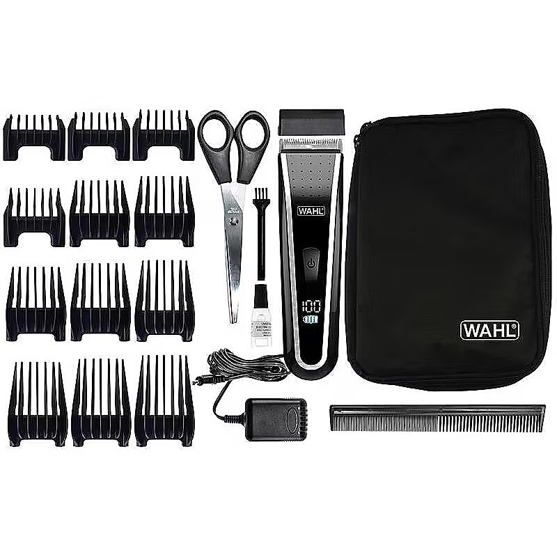 VidējaisApraksts LV - Matu griežamā mašīna Wahl Lithium Pro LCD 1902. • Uzlabotā Li-ion tehnoloģija nodrošina 100 minūšu darbības laiku un ātrās uzlādes sistēmu; • Vācu kvalitātes metāla asmeņi; • Smart LCD uzlādes indikators; • Darbība ar vadu un bez vada; • 12 stiprinājuma ķemmes (1.5, 2, 2.5, 3, 4.5, 6, 9, 12, 16, 18, 22, 25 mm), šķēres, ķemme, eļļa asmenim, tīrīšanas birstīte, somiņa, asmens aizsargs, lietošanas instrukcija.