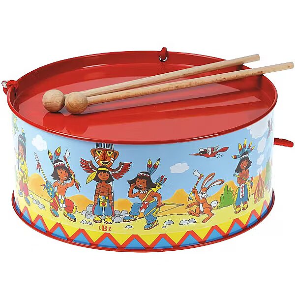 Description - Metal drum diameter 20 cm and height 9 cm. Bebenek with an Indian motif. Included are two wooden sticks. Designed for children from 3 years old.