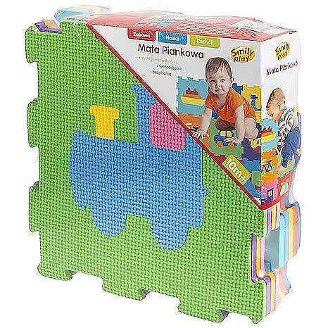 Description - Vehicles foam mat The colorful foam mat can be used as a rug - a floor pad and as a jigsaw puzzle. It is made of soft foam, pleasant to the touch. It can also be used as a pad for other games or a nap. The toy teaches: Perceptiveness Color and shape recognition Building spatial figures Imagination fun Ideas how you can play with puzzles: Connect all the elements with your child and tell what is on them. Build 3D figures from the puzzle, e.g. a cube or a box, and figure out together how to play with them. Make a table out of them. There are many ways to play, limited only by your imagination. Put the foam pictures together. This game will perfectly develop the ability to think logically and spatially. You can also build foam structures, cubes, towers or pyramids. The puzzles are very soft and pleasant to the touch. One side has an interesting patterned surface, the other side is smooth.