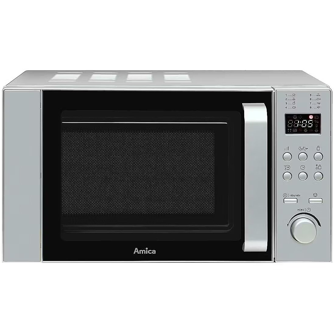 Description - Electronic control Thanks to the Electronic Control, you can set the exact heating power and time. This will be especially useful for ready meals that require precise settings indicated by the manufacturer. Enjoy the comfort. Ready programs Does choosing the right power and heating time have to be a problem? No, just put the food in, set its weight, select the type and the microwave oven will select the appropriate program itself. Simple and convenient. QuickStart You're coming home. You feel hungry and need to eat something immediately. In such situations, the QuickStart function will be perfect. You click and it's on. Wait a minute and your favorite dish is ready. MultiWaveSystem You love lasagna, but have you often found that when heated in the microwave, the dish was browned on the outside and still cold on the inside? Thanks to the MultiWave System, such a situation will not happen. Several microwave emission points combined with a rotating plate allow you to heat the entire food evenly, both outside and inside. Halogen lighting So that you can fully control the heated dish, Amica microwave ovens have been equipped with halogen lamps that illuminate the interior of the device. Thanks to them, you can check the condition of the heated dish by looking through the glass, without having to open the door. Comfortable and useful! Stainless steel interior The interiors of the microwave ovens are made of stainless steel, which is resistant to damage and makes cleaning much easier. It's comfort for years! ChildLock The lock protects against unwanted change of settings and allows you to wipe the control panel, even when the oven is on. Time defrost Just set the defrosting time and the device will quickly defrost the food. Weight defrosting Just set the weight and the device will select the time and power of defrosting. Grill It allows you to prepare a perfectly crispy and browned dish.