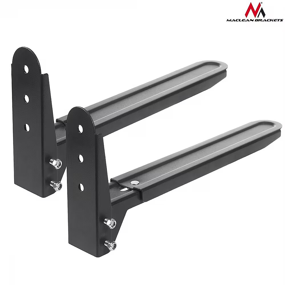 Description - Microwave handle MC-776 B black up to 20 kg The holder/shelf allows you to place a microwave oven, as well as AV equipment, eg SAT receiver, DVD, console, etc. The universal wall bracket allows you to mount devices with a weight of up to 20kg and almost any size on the wall, which saves space and makes it convenient to use. The handle is made of very durable materials which ensures its durability and reliability of use. Universal wall bracket for microwave ovens as well as AV equipment, eg SAT tuner, DVD, console, etc. The holder is very easy to assemble and use. Just screw to the wall with the screws included in the set, set the shoulder width and mount the device. The handle ensures stability of the device and easy access to it. The handle consists of two sturdy L-shaped arms with adjustable length, fastened to the wall using the screws provided.