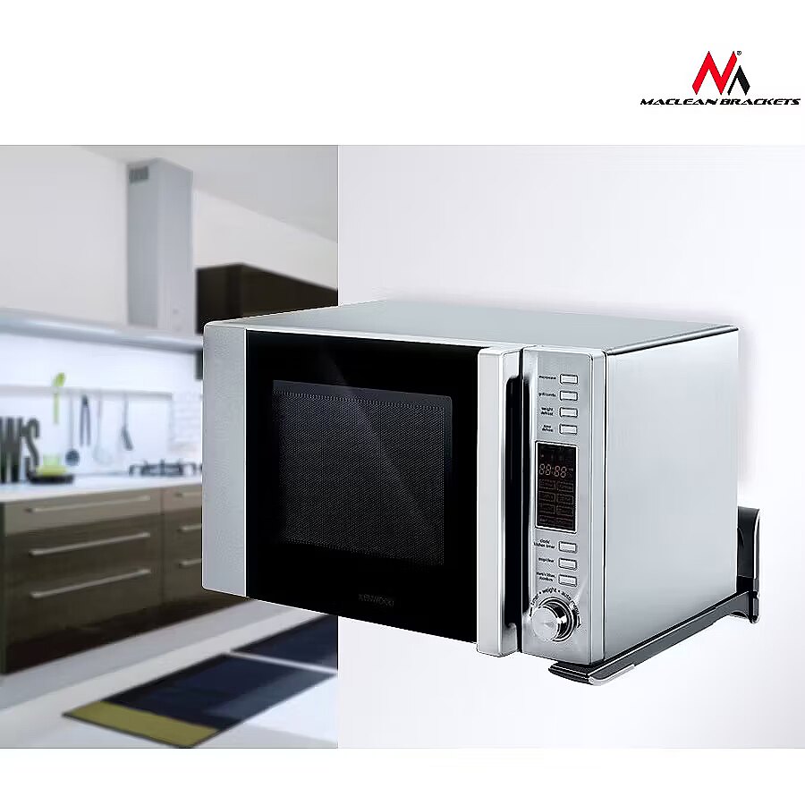 Apraksts - Mikroviļņu krāsns turētājs MC-776 B melns līdz 20 kg Turētājs/plaukts ļauj novietot mikroviļņu krāsni, kā arī AV aprīkojumu, piemēram, SAT uztvērēju, DVD, pulti utt. Universālais sienas kronšteins ļauj pie sienas piestiprināt ierīces ar svaru līdz 20 kg un gandrīz jebkura izmēra, tādējādi ietaupot vietu un padarot to ērti lietojamu. Rokturis ir izgatavots no ļoti izturīgiem materiāliem, kas nodrošina tā izturību un lietošanas uzticamību. Universāls sienas kronšteins mikroviļņu krāsnīm, kā arī AV iekārtām, piemēram, SAT uztvērējam, DVD, konsolei utt. Turētājs ir ļoti viegli samontējams un lietojams. Vienkārši pieskrūvējiet pie sienas ar komplektā iekļautajām skrūvēm, iestatiet plecu platumu un uzstādiet ierīci. Rokturis nodrošina ierīces stabilitāti un vieglu piekļuvi tai. Rokturis sastāv no diviem izturīgiem L-veida zariem ar regulējamu garumu, kas piestiprināti pie sienas, izmantojot komplektā iekļautās skrūves.