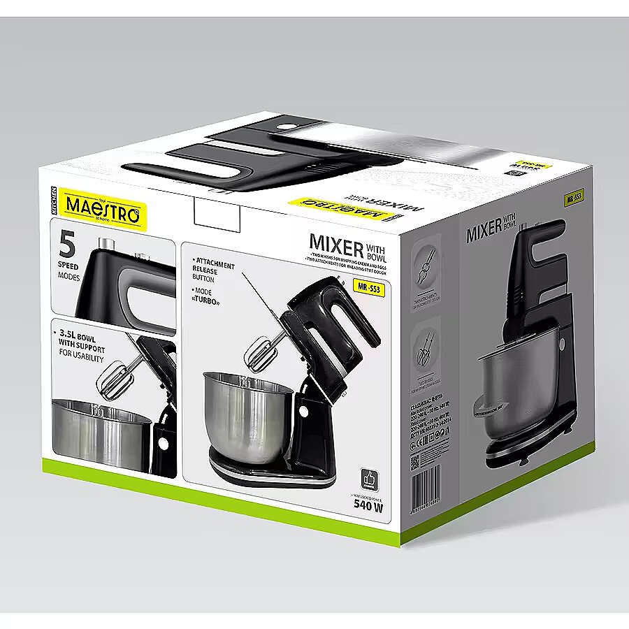 productName - Maestro MR-553 Stāvošais mikseris ar rotējošu trauku 600 W Melna, tērauda