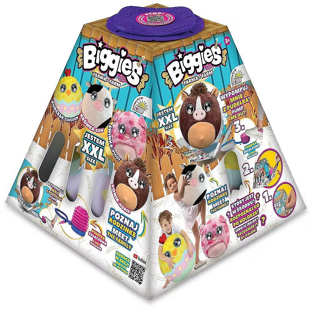 Apraksts - Apbrīnojama inovācija un wow efekts! Jauki talismanu dzīvnieki bumbiņu formā! Izpumpējiet tos no kastes! Sākot pumpēt, talismans kļūst arvien lielāks un lielāks. Pēkšņi tas kļūst tik liels, ka pats atver kastīti. Vau, talismans ir tik liels - XXL! Tagad 4 jauni burvīgi bumbiņu dzīvnieki tieši no fermas! Starp tiem atradīsi raibu govi, rozā cūciņu, dzeltenu vistu un līkumainu zirgu! Piepūsti talismani sasniedz 45 cm diametru.